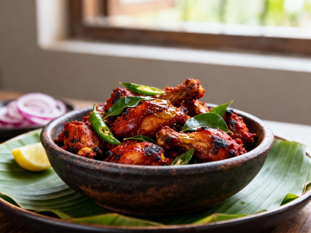 - Air-fryer shortcut: Cook marinated chicken in the air fryer at 400°F (200°C) for 10–14 minutes, then toss in a pan with the onion-tomato masala and curry leaves to coat and dry-fry for 3–5 minutes.