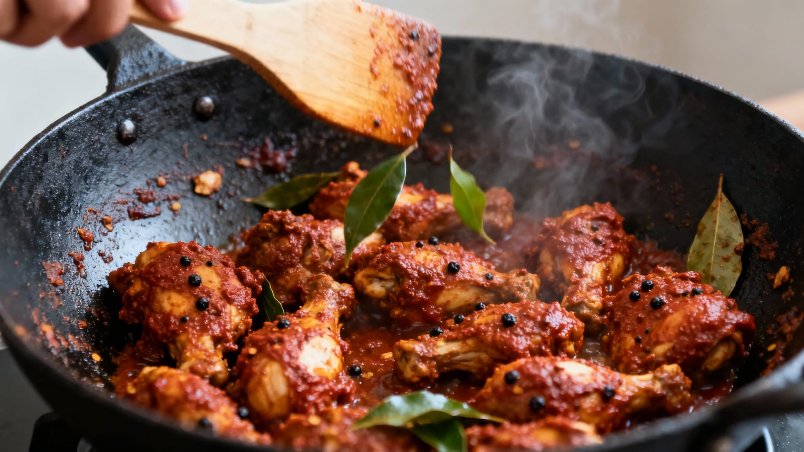 - Use a wide pan: Crowding traps steam. A wider skillet helps the masala reduce and stick (aka the whole point of chukka).