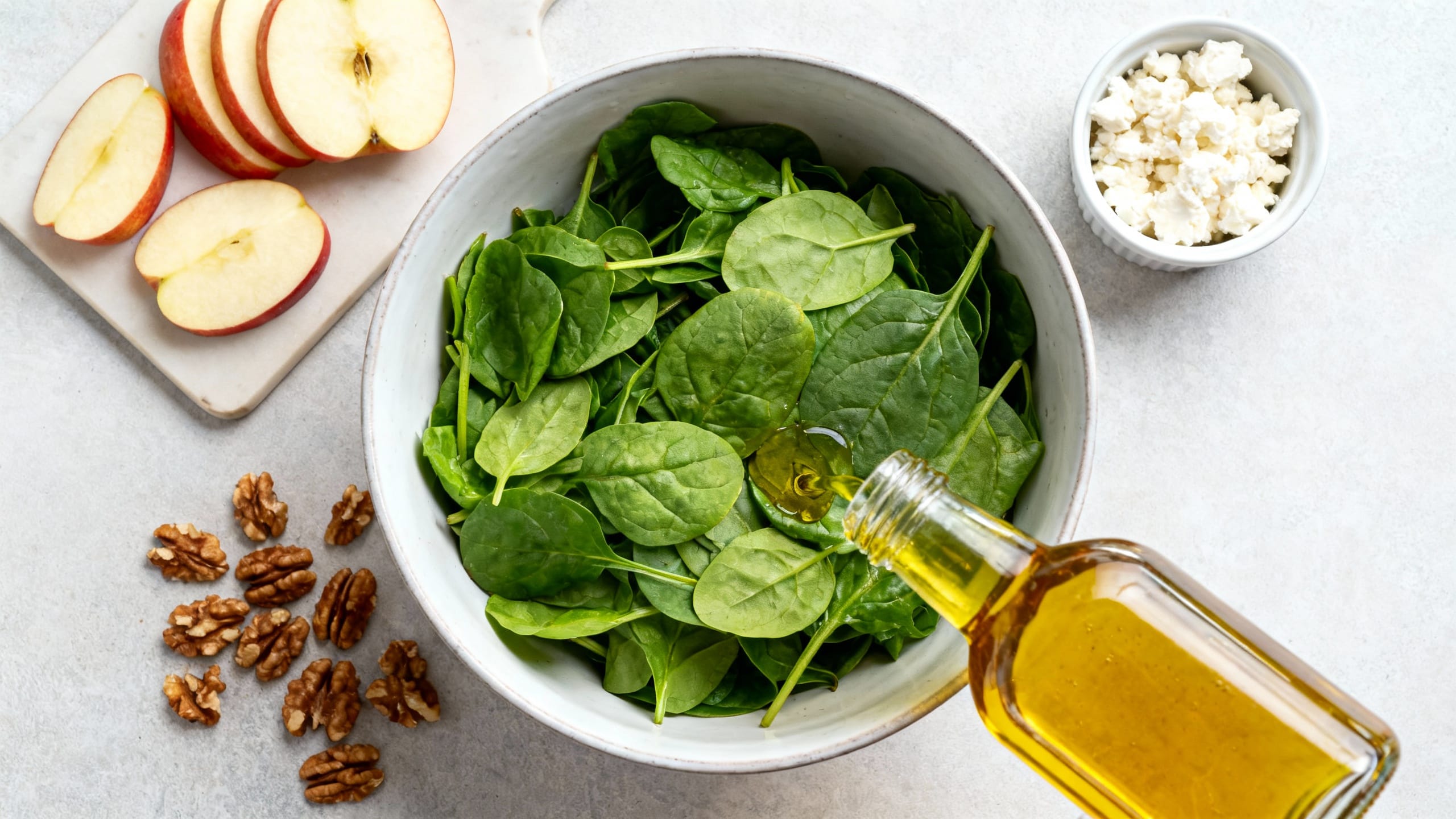 It’s built around whole foods: spinach, apples, nuts, and a simple homemade dressing with olive oil and vinegar (no bottled additives needed). You can keep it even cleaner by choosing unsweetened dried cranberries and using a small amount of maple syrup or honey in the dressing.