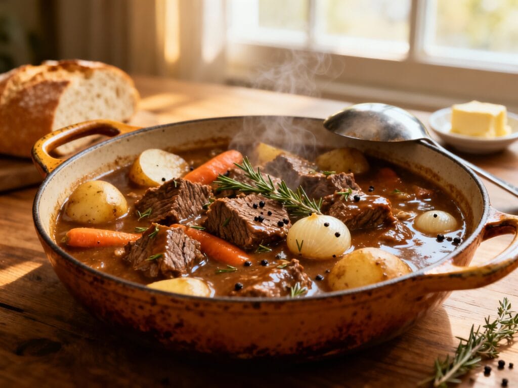 Cold nights basically demand one thing: a big, cozy bowl of beef stew. This one is rich, savory, and packed with tender beef, carrots, and potatoes in a glossy, herby gravy you’ll want to mop up with bread.