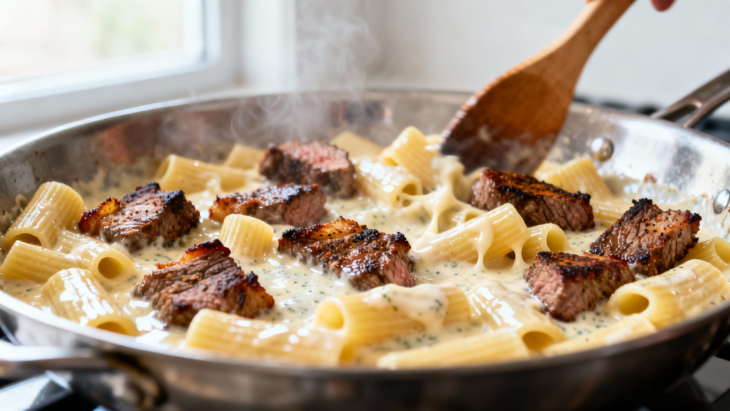 Cajun Steak Tips in Cheesy Rigatoni Parmesan Sauce That Feels Restaurant-Worthy