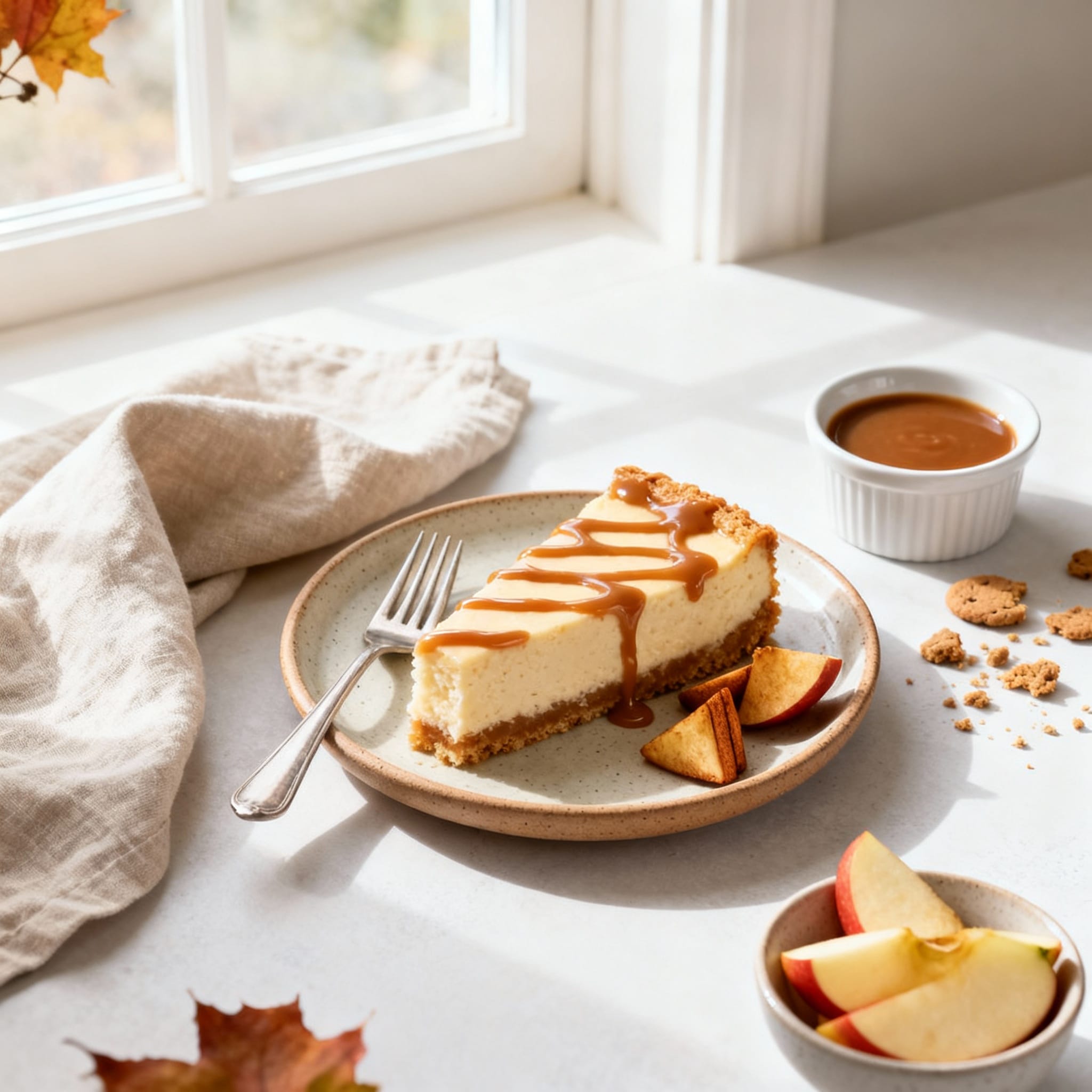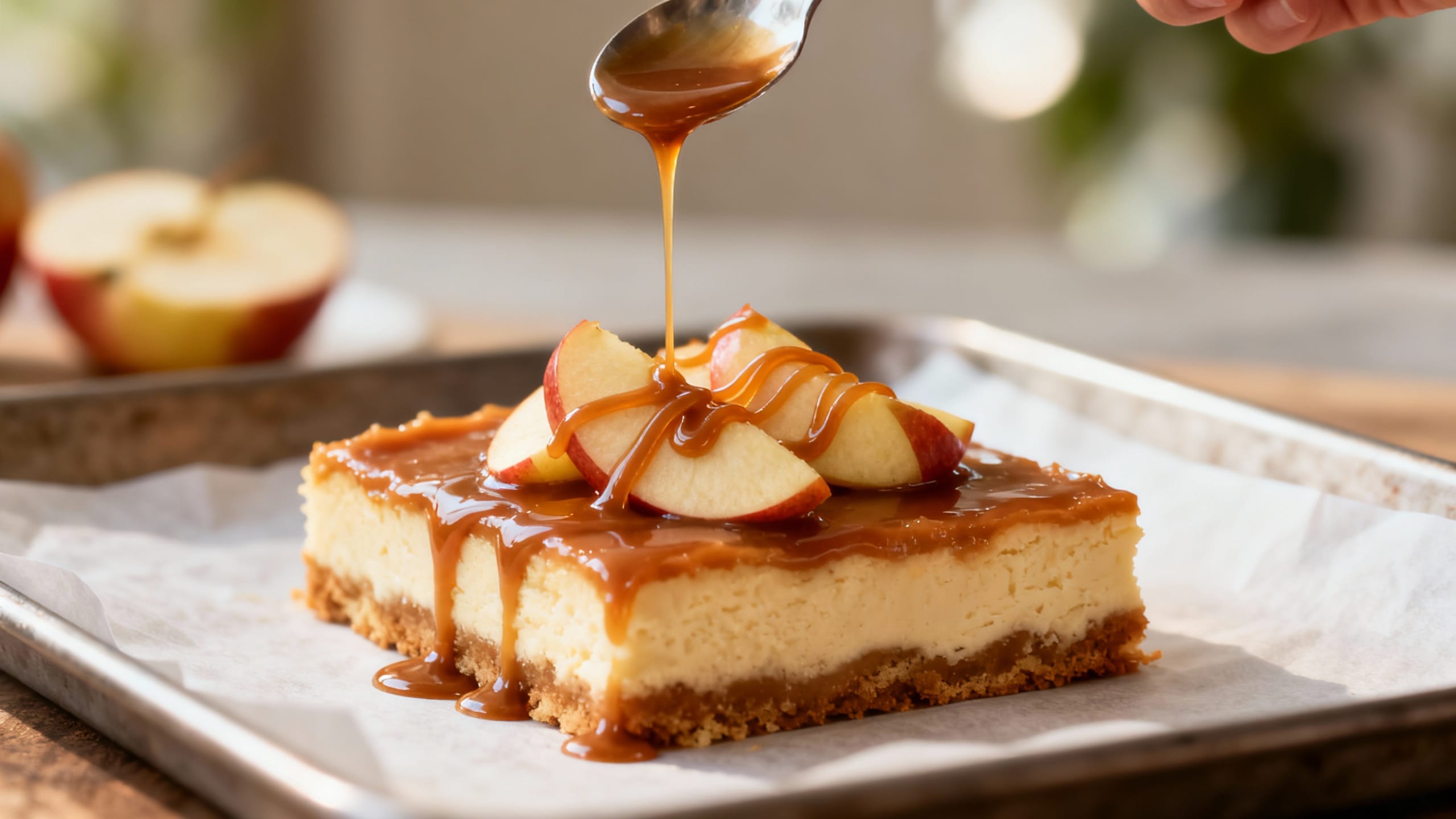 - Make it extra caramel: Swirl 2–3 tablespoons caramel into the cheesecake batter before adding apples.
