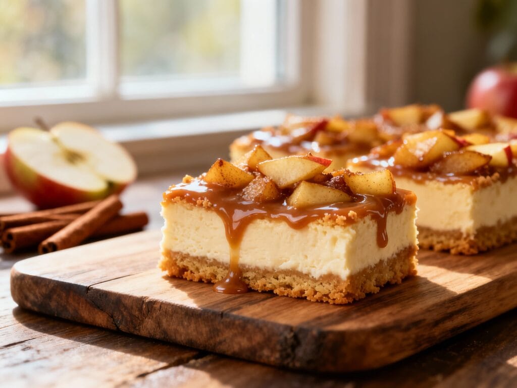 These bars hit the sweet spot between rich and refreshing: tangy cheesecake, warm spiced apples, and caramel sweetness all stacked into an easy-to-serve square. No water bath, no fussy layers—just straightforward steps and a seriously rewarding finish.