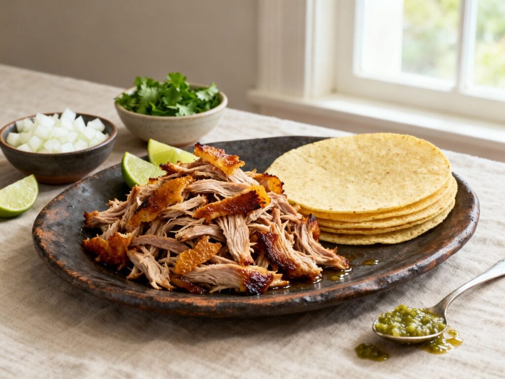 - Taco bar mode: Serve with warmed tortillas, diced onion, cilantro, pickled red onions, salsa verde, and cotija.
