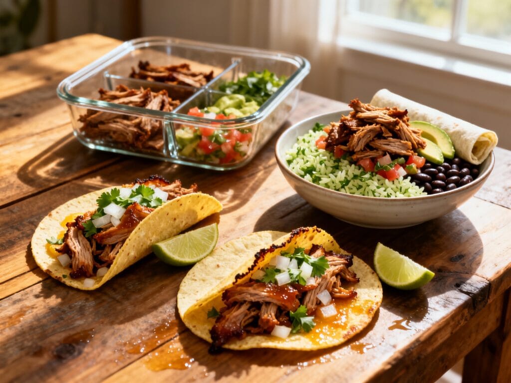 Day 1: Tacos—crisp the carnitas under the broiler and serve with tortillas, onion, cilantro, and lime. Day 2: Bowls—layer rice, beans, carnitas, salsa, cabbage, and avocado (add a spoon of cooking liquid to keep the meat juicy). Day 3: Meal prep—portion carnitas with rice/cauli rice and veggies; pack sauces separately so everything stays fresh.
