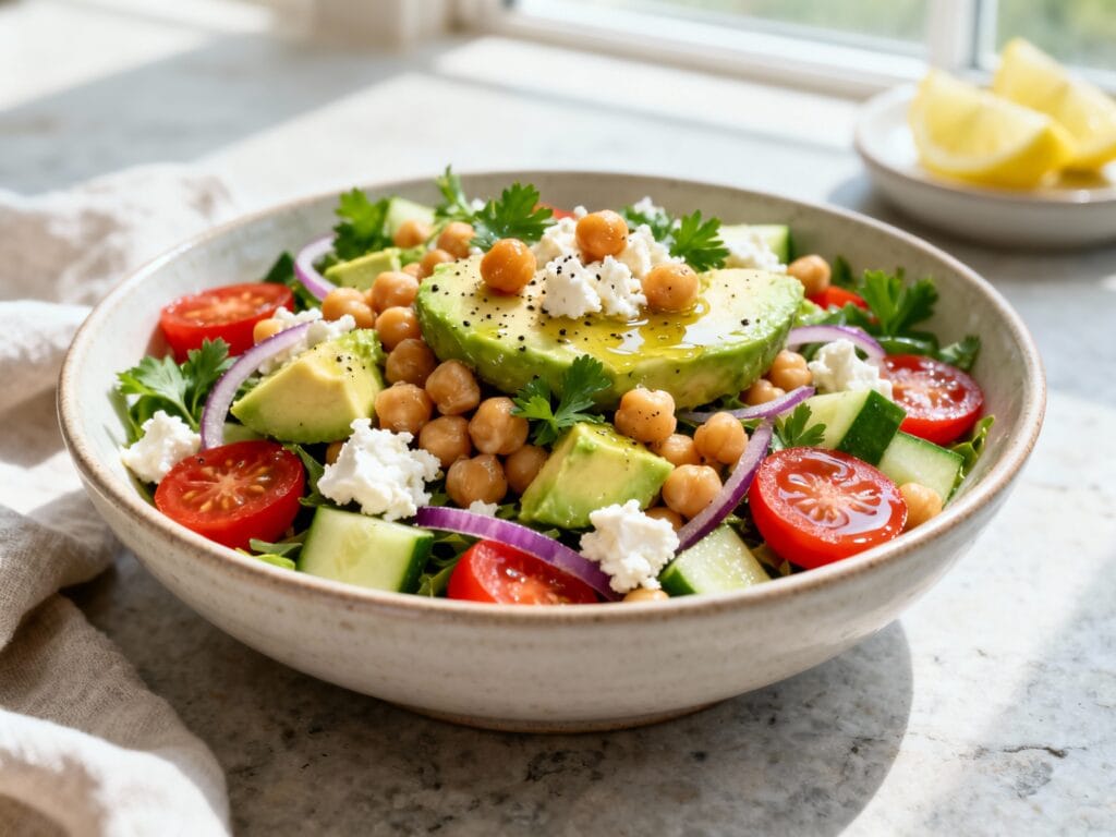 It’s fast, filling, and genuinely satisfying: chickpeas bring protein and fiber, avocado brings creamy richness, feta adds salty tang, and the lemony dressing keeps it fresh and light—perfect for summer meals that don’t feel heavy.