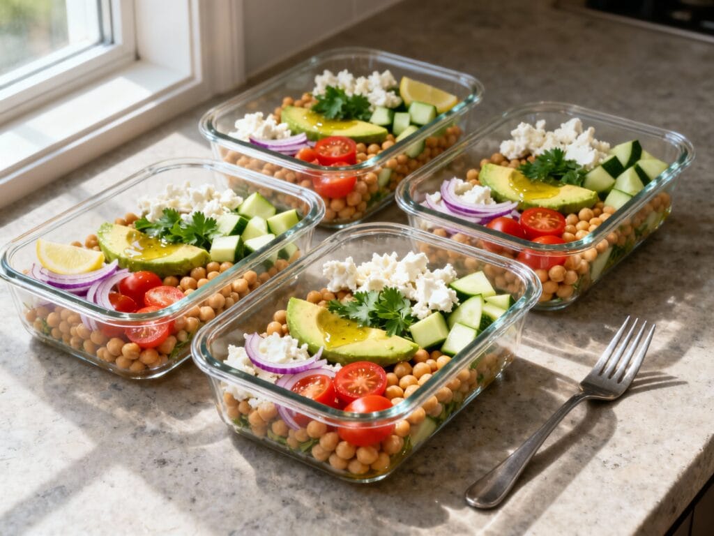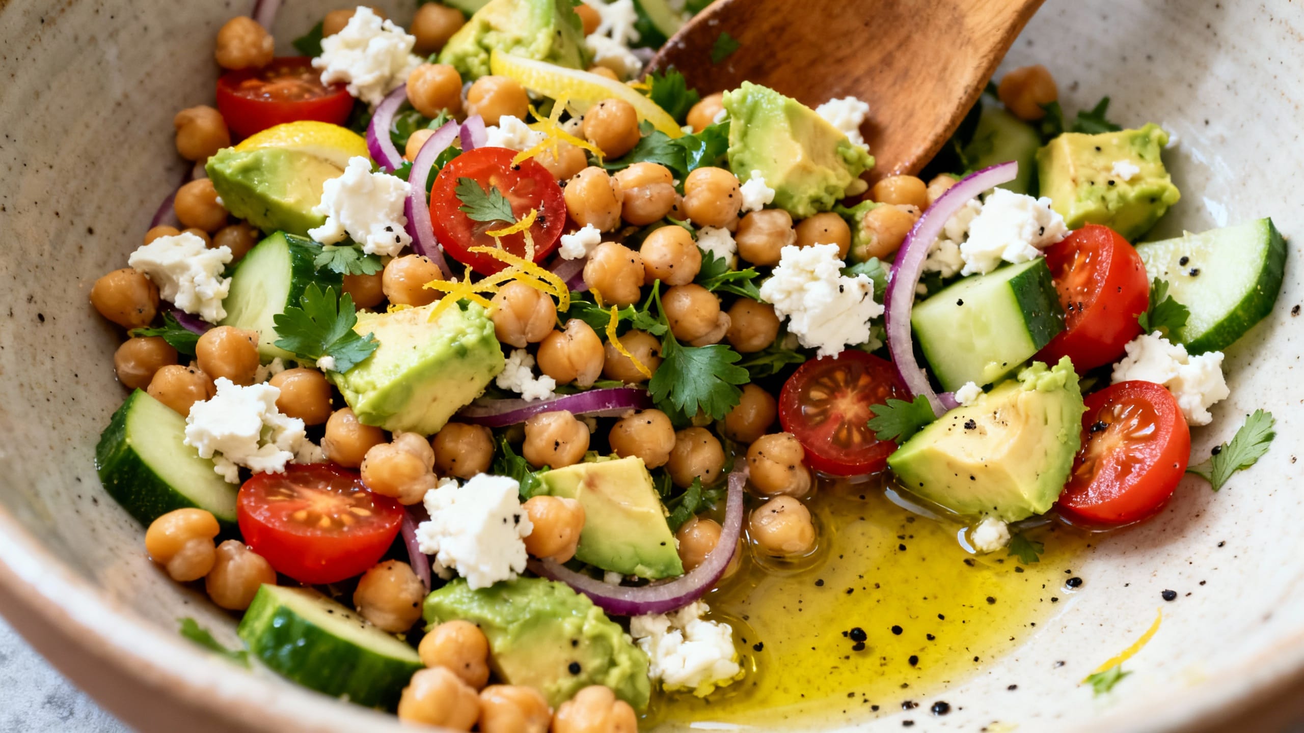 This salad hits the sweet spot: protein-packed chickpeas, salty feta, buttery avocado, and a bright lemony dressing that keeps everything tasting fresh. It’s no-cook, super customizable, and perfect for portioning into grab-and-go containers for light lunches all week.