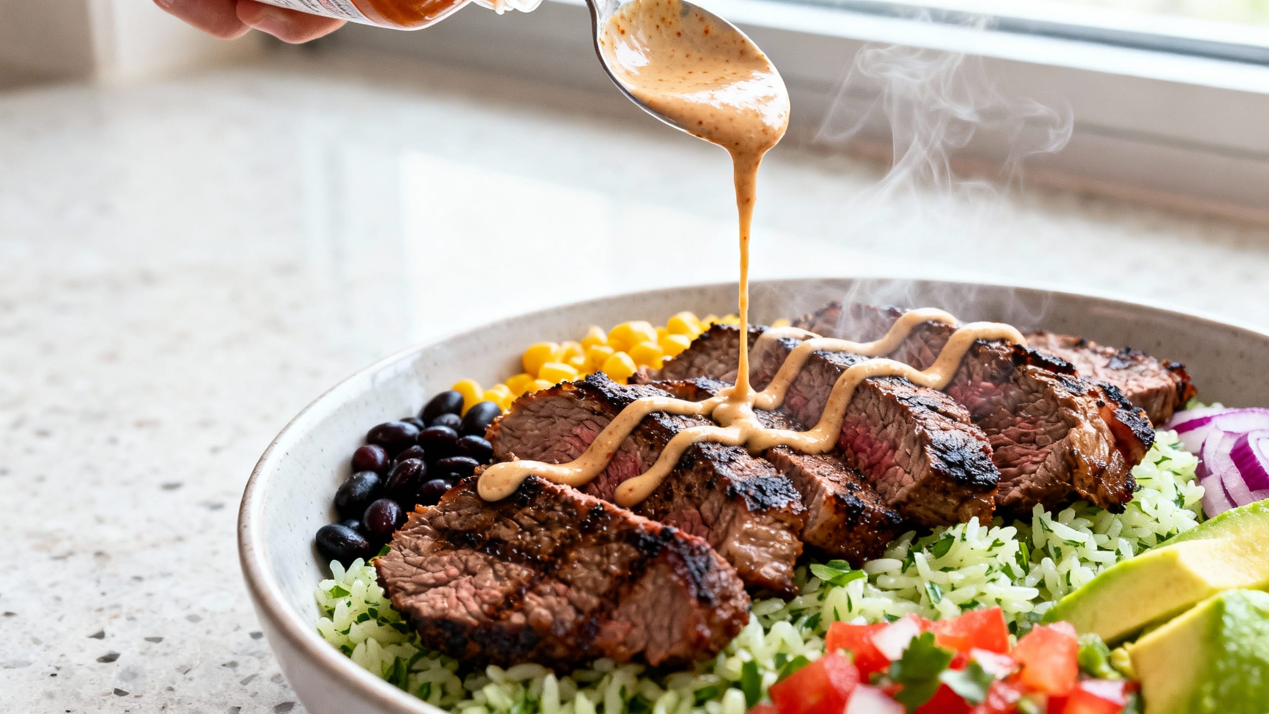 Yes, these are meal-prep friendly. Cook the steak, rice, and beans/corn ahead, and keep the fresh toppings separate. Pack the drizzle in a small container and add it right before eating so everything stays crisp and not soggy.