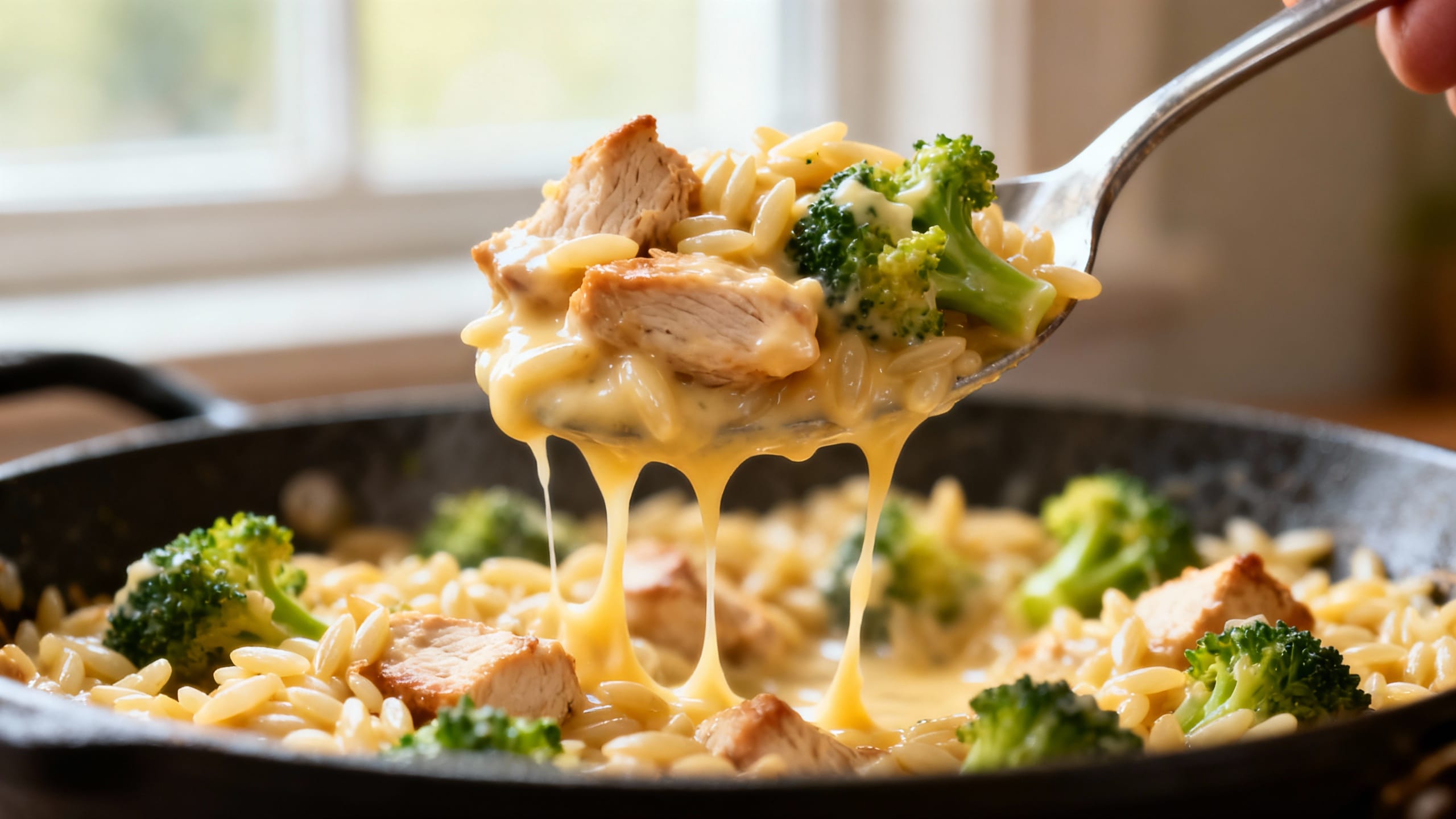 If “comfort food” and “weeknight doable” had a baby, it would be this creamy cheesy chicken broccoli orzo. It’s cozy, saucy, and loaded with tender chicken, bright broccoli, and tiny orzo that cooks right in the same pan.