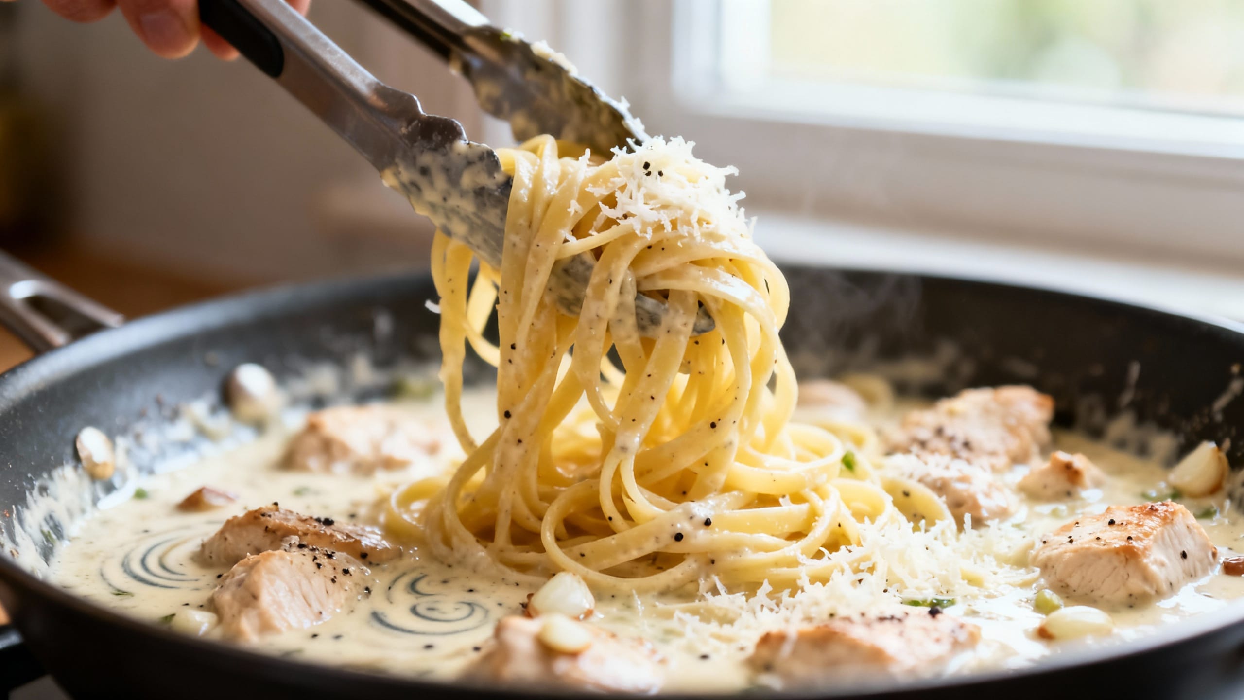 This recipe hits the sweet spot between “quick weeknight dinner” and “restaurant-level comfort food”: one pan sauce, simple steps, big flavor from garlic and parmesan, and a creamy finish that clings to every bite of pasta.