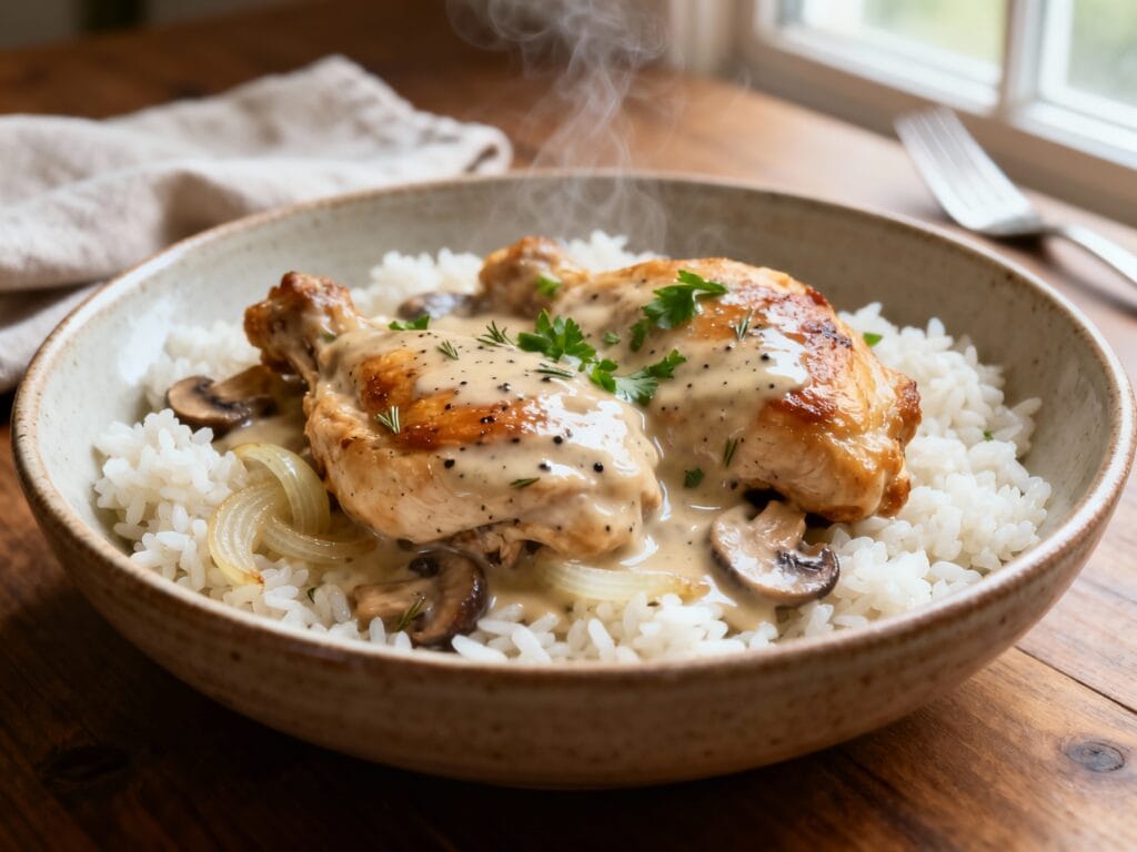 Creamy Smothered Chicken and Rice the Whole Family Will Love