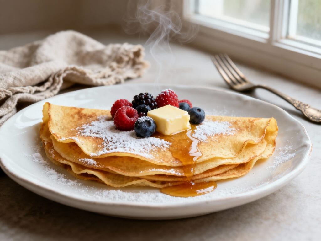 These crepes are thin, flexible, and ready for whatever vibe you’re feeling: sweet with berries and whipped cream, or savory with eggs and cheese. Once you nail the swirl, you’ll be making “just one more” until the batter’s gone.