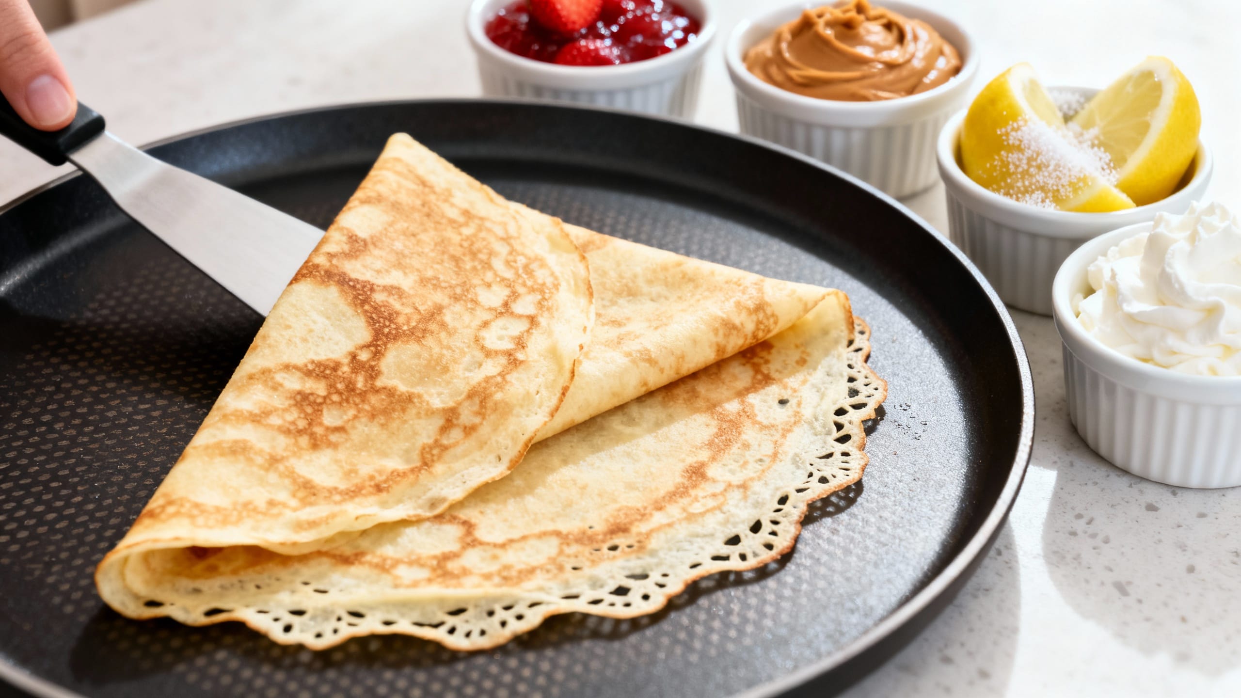 This crepes recipe is streamlined for busy mornings: one bowl, quick batter, and simple fillings plus fold ideas so you can make them feel fancy in under 20 minutes.