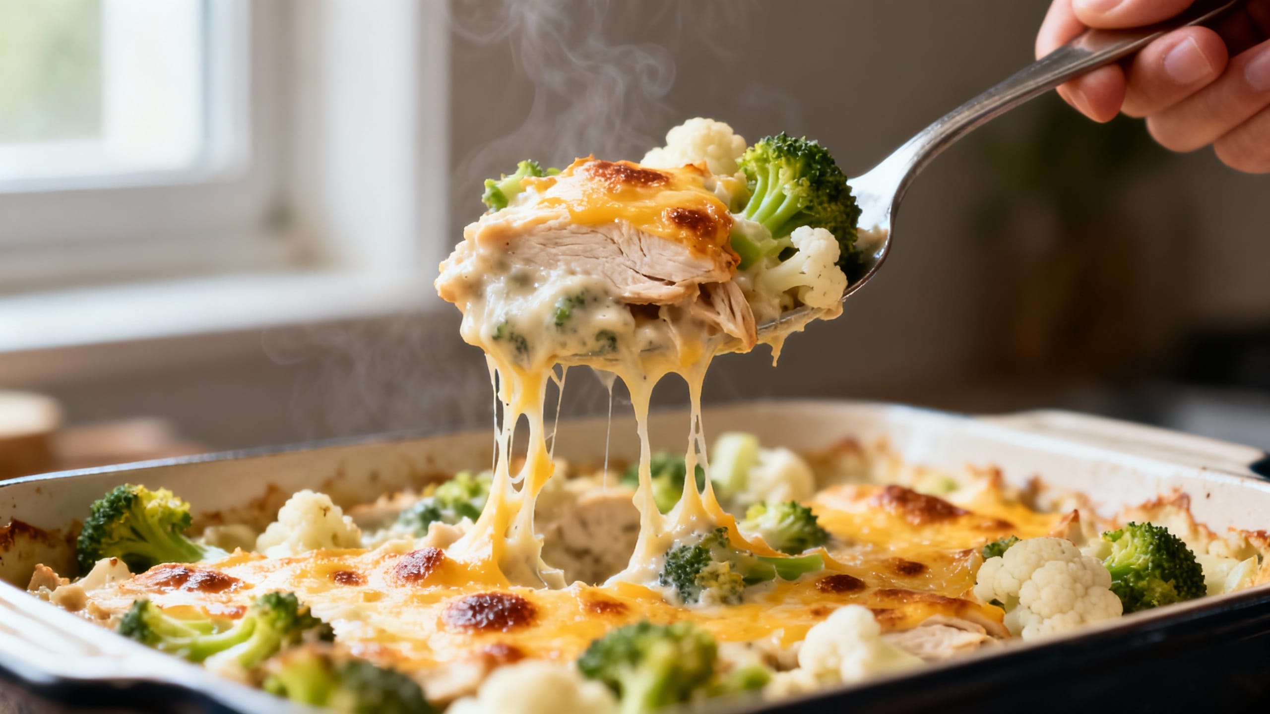 - If using fresh cauliflower or broccoli, lightly steam until just tender-crisp (about 3–4 minutes). If using frozen, thaw and squeeze out excess water so your casserole doesn’t get watery.