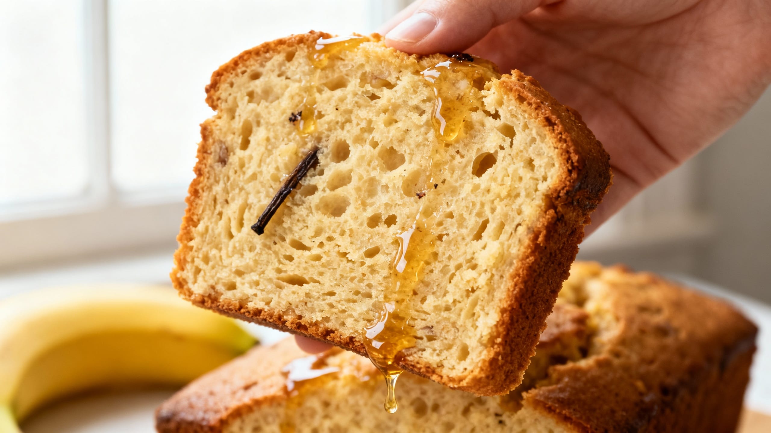 It’s fluffy and moist at the same time (rare, iconic), naturally sweetened with honey, and super reliable—no weird ingredients, no complicated techniques, just a golden, vanilla-kissed banana bread that tastes like comfort.
