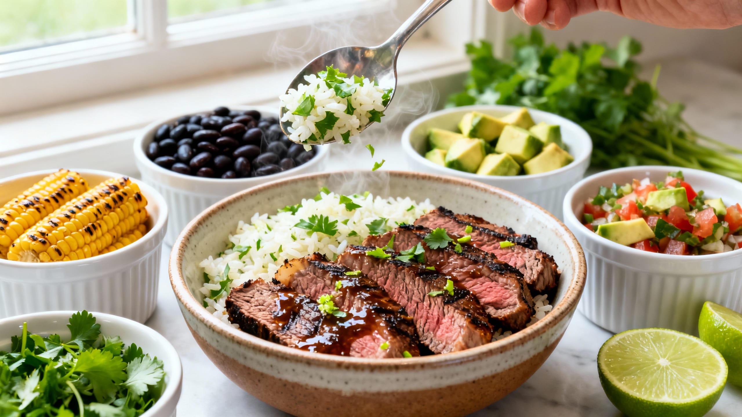 These steak bowls hit every craving: zesty, savory, a little smoky, and super fresh. The cilantro lime marinade does the heavy lifting, and you can build each bowl exactly how you want—more heat, more crunch, extra sauce, no rules.