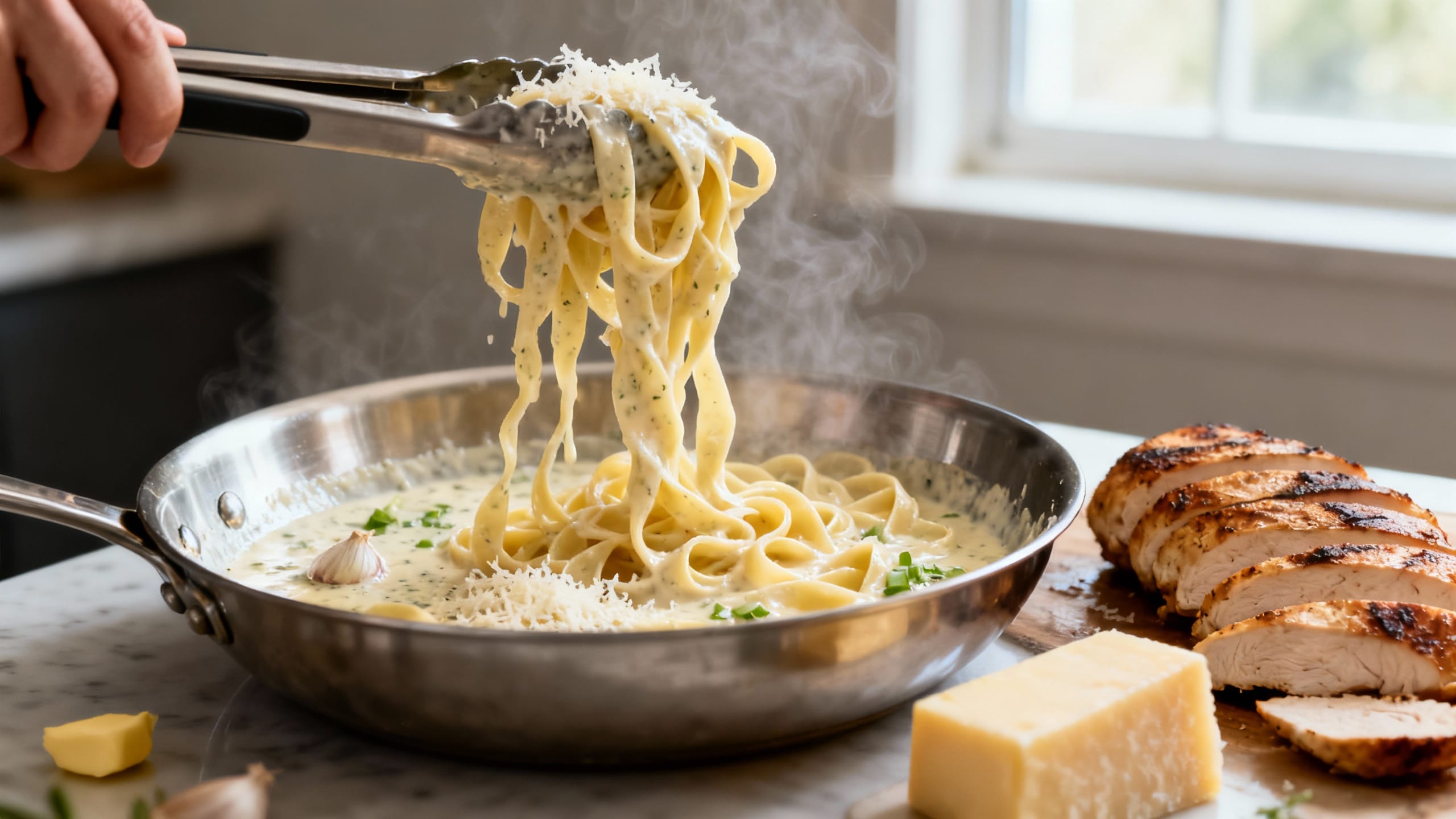 It’s a weeknight win: juicy chicken, a silky garlic Parmesan sauce, and pasta that clings to every bite. Make it once and you’ll start “accidentally” buying extra Parmesan.