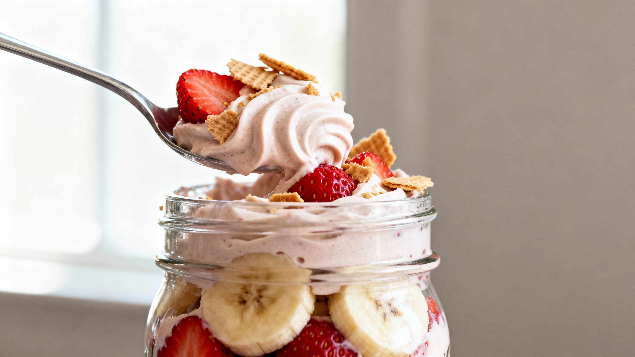 - Serve: Right before serving, top with extra strawberries, banana slices, and a few crushed wafers for crunch.