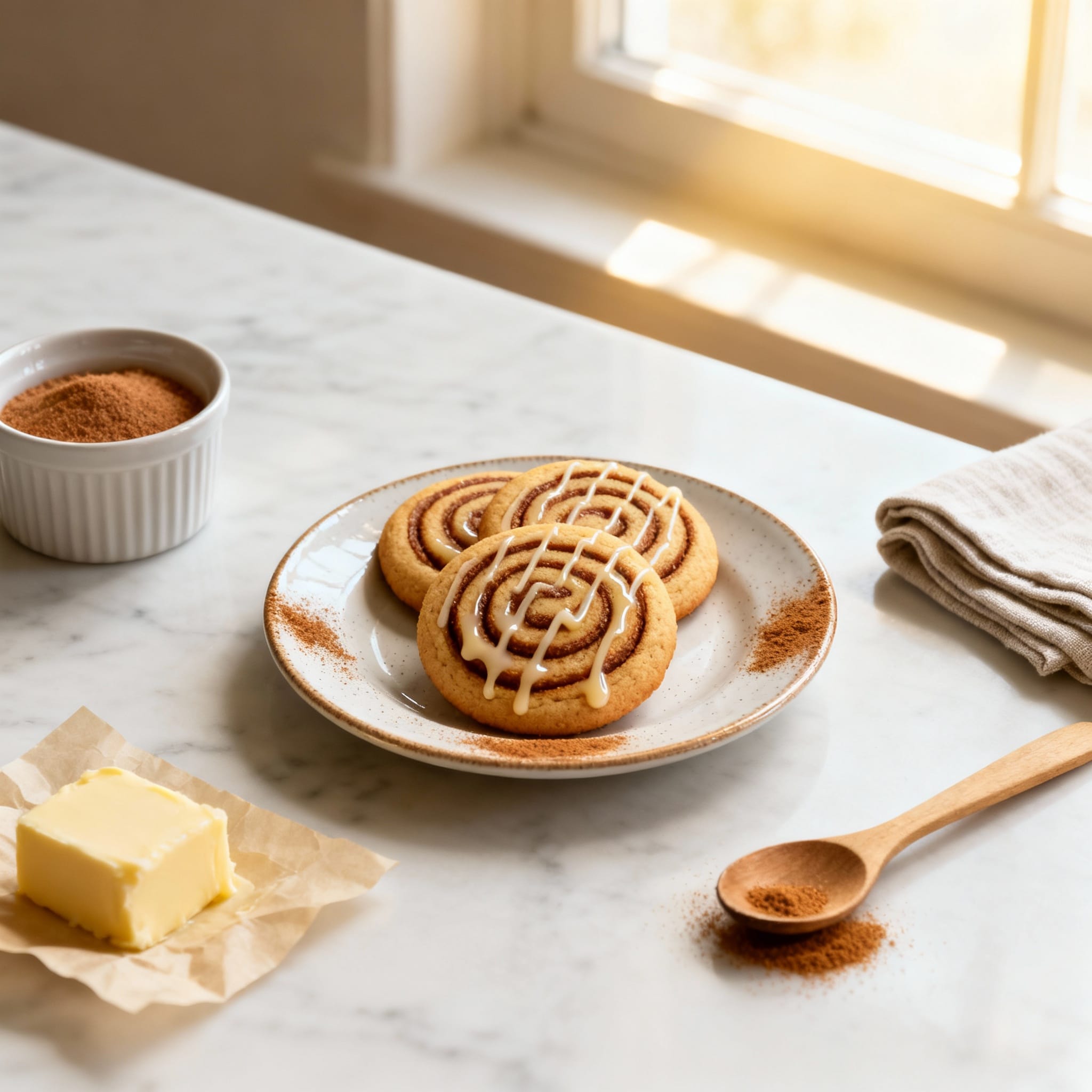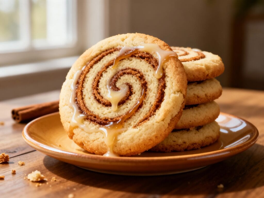 Store cinnamon roll cookies in an airtight container at room temp for up to 4 days (place parchment between layers once glazed). For peak coziness, warm one cookie for 8–10 seconds in the microwave—just enough to soften the center and wake up the cinnamon.