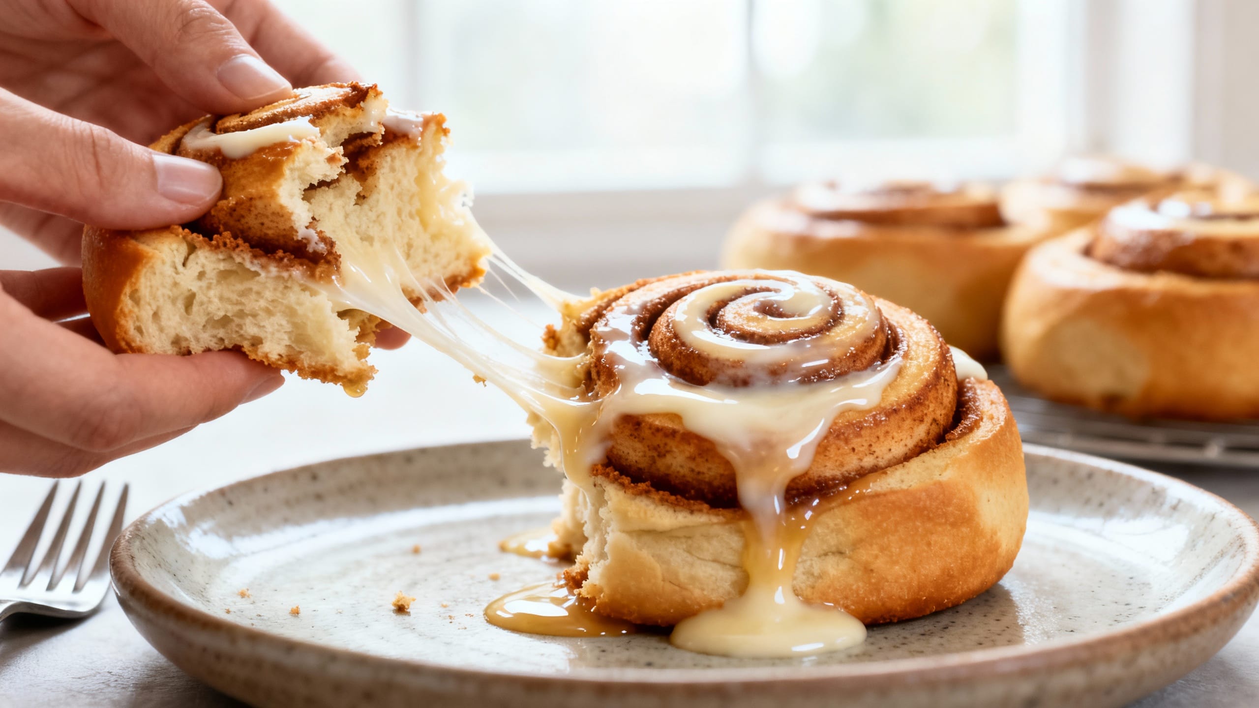 Store frosted cinnamon rolls in an airtight container at room temperature for up to 2 days or in the fridge for up to 5 days. Reheat individual rolls in the microwave for 10–20 seconds (add a tiny splash of milk if they’re chilled), or warm in a 300°F oven for about 8–10 minutes until soft and cozy again.