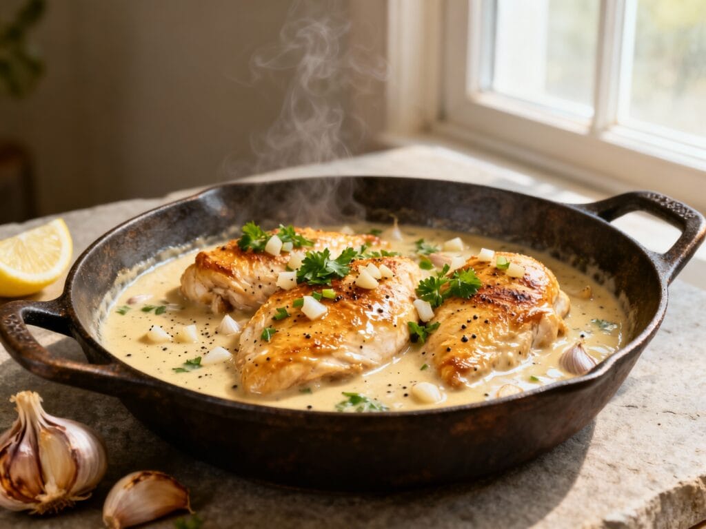 It’s a one-pan moment with golden chicken, a silky garlic cream sauce, and just enough lemon and Parmesan to keep it bright. Serve it over cauliflower mash, zucchini noodles, or straight out of the skillet (no judgment).