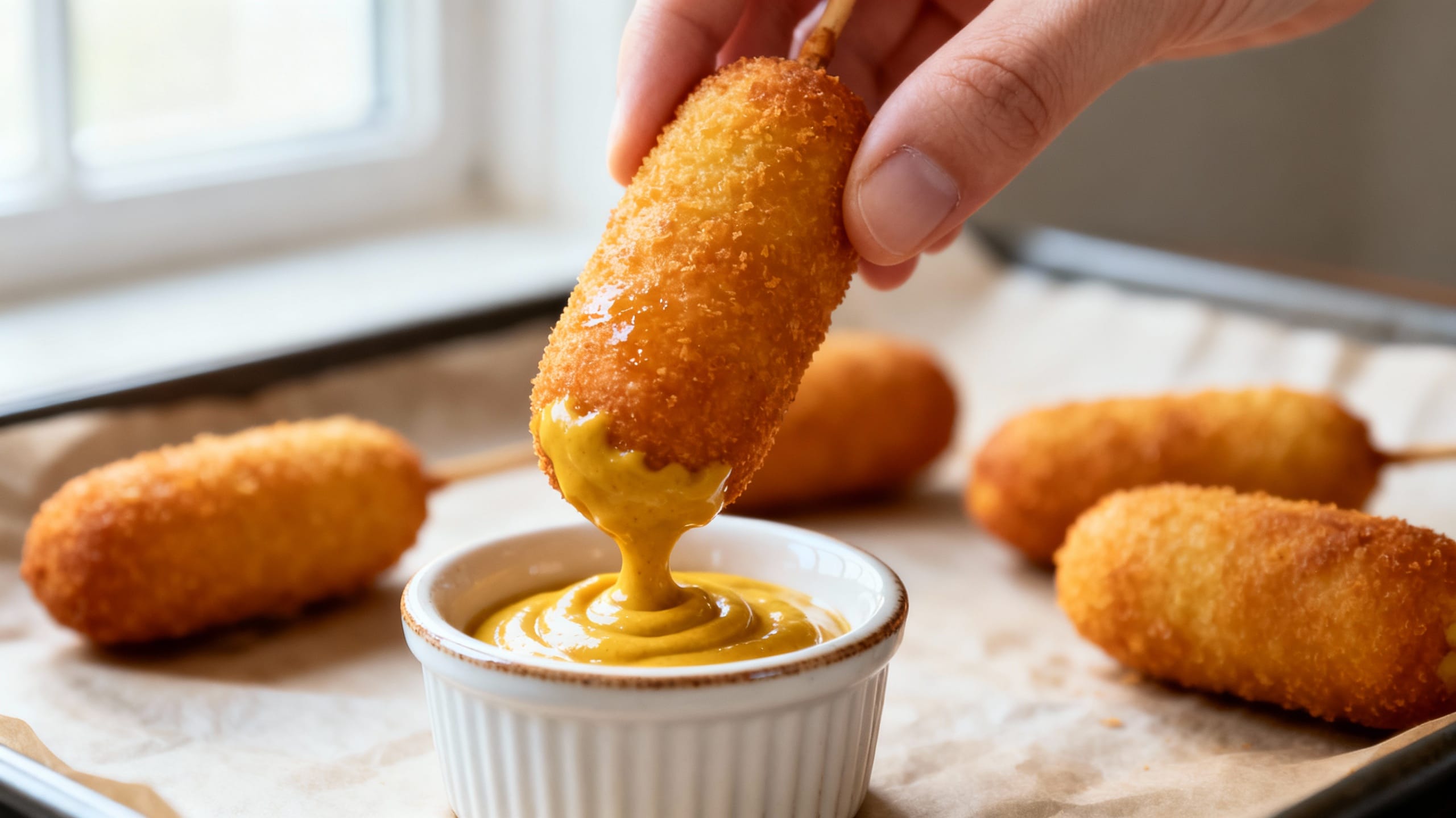 - Dry hot dogs = better coating. Moisture is the enemy of batter sticking, so don’t skip the pat-dry.