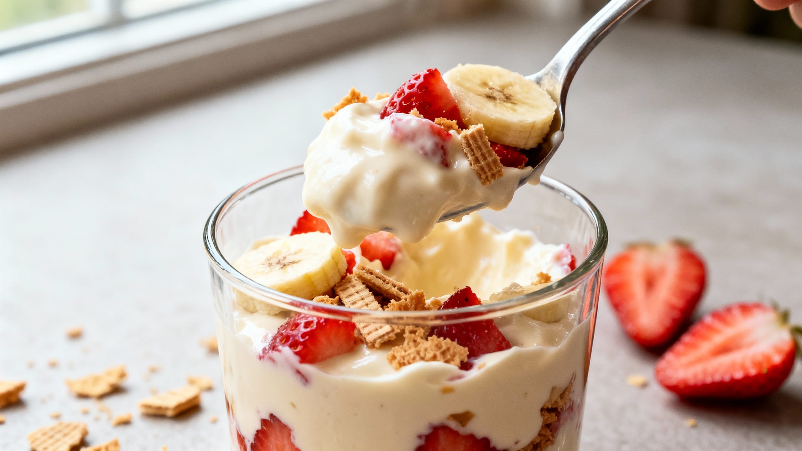 - Finish and serve. Right before serving, add a few extra strawberry slices, banana coins, or crushed wafers on top for a cute, crunchy moment.