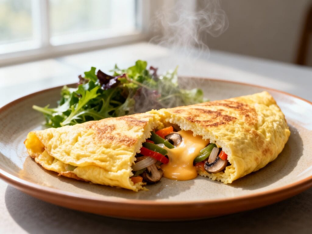 Omelettes are best fresh, but you can store leftovers in an airtight container in the fridge for up to 2 days. Reheat gently in a nonstick pan over low heat (covered) for 1–2 minutes, or microwave in 15-second bursts until just warm—don’t overdo it or the eggs turn rubbery.