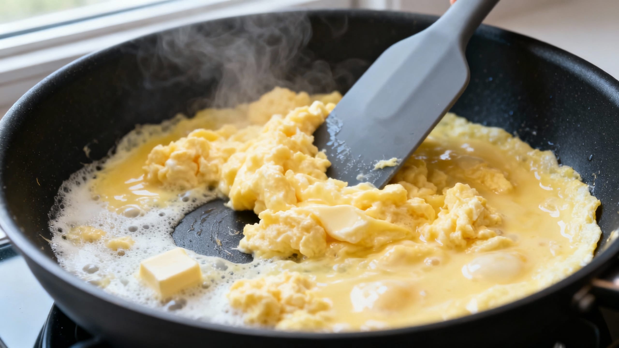 Yes, but it’s trickier. Use a well-seasoned cast iron or a quality stainless pan with enough butter, and keep the heat very low. Stir gently at the start and don’t rush the set—sticking usually happens when the pan is too hot or the eggs sit too long without movement.
