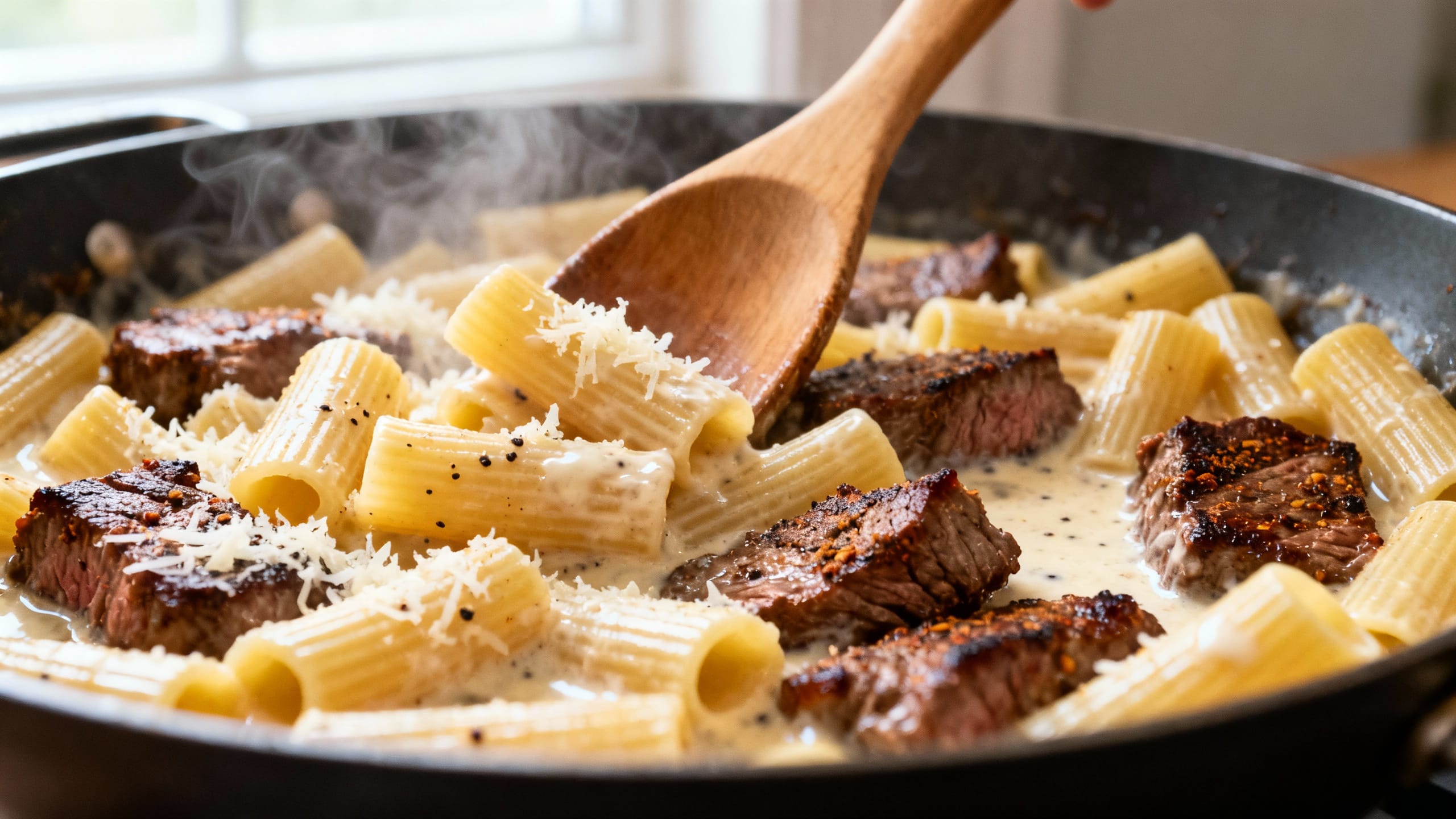 Store leftovers in an airtight container in the fridge for up to 3 days. Reheat gently on the stove or in the microwave with a splash of broth or cream to loosen the sauce (rigatoni drinks it up). Warm just until hot to keep the steak from overcooking.