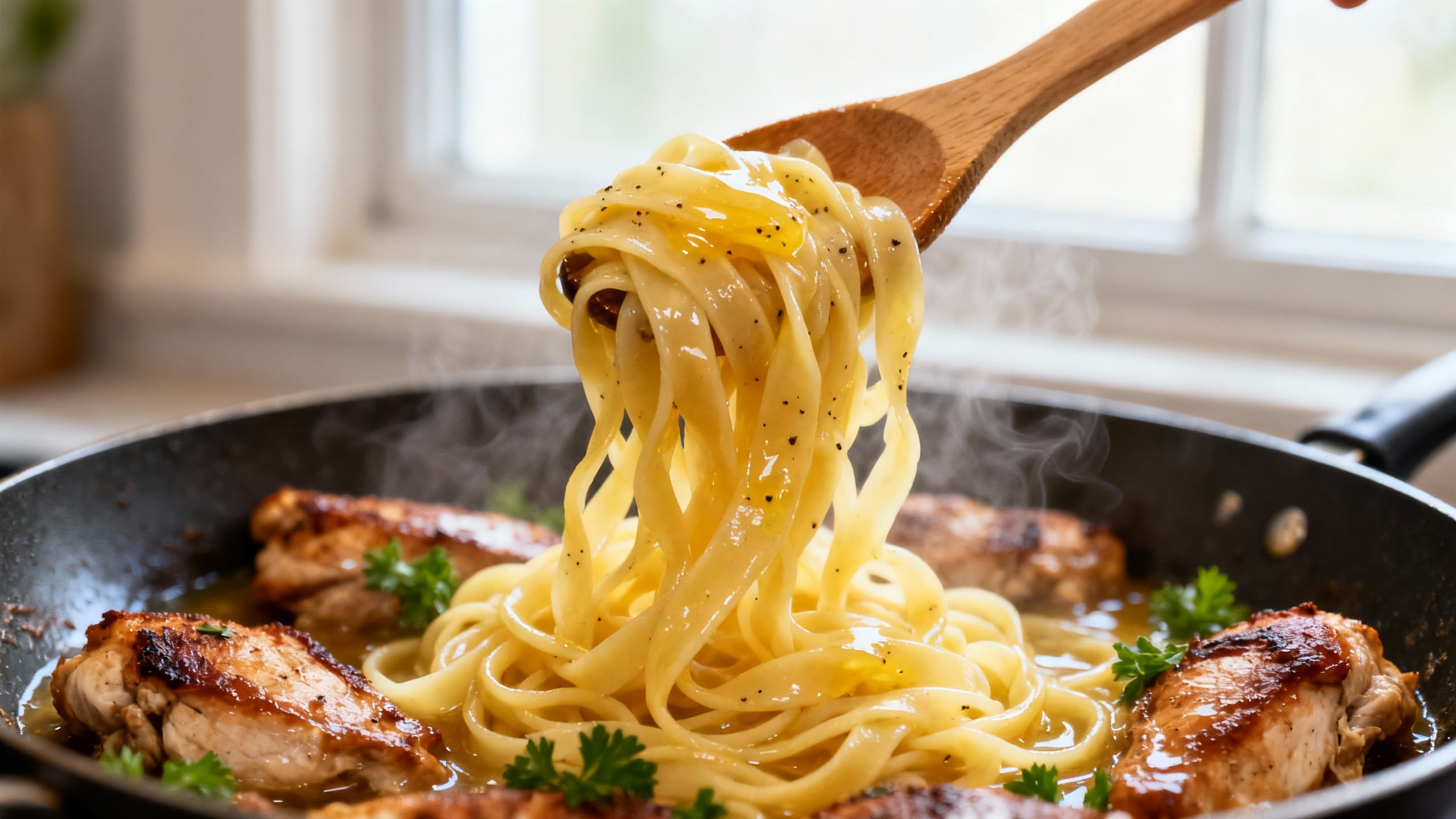 Egg noodles are the classic “buttered noodles” pick because they’re tender and cozy. But fettuccine, spaghetti, or even rotini works—just reserve pasta water and don’t overcook.
