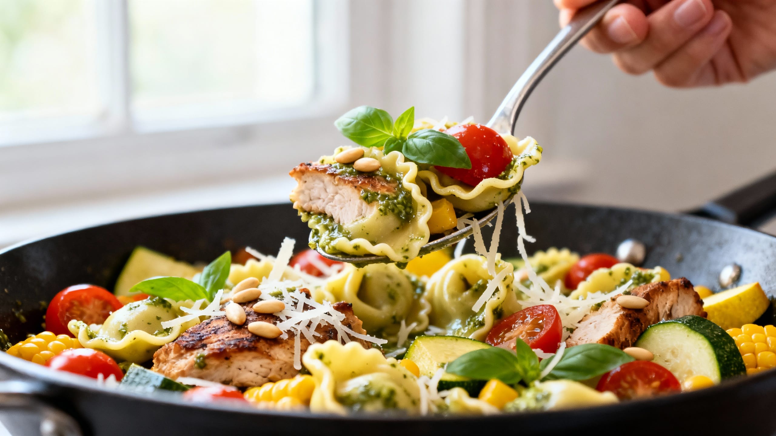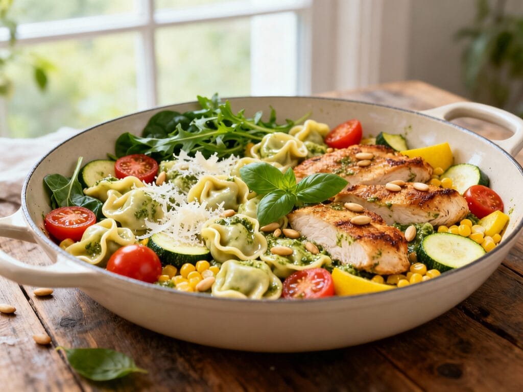 One-Pan Pesto Chicken Tortellini With Summer Veggies