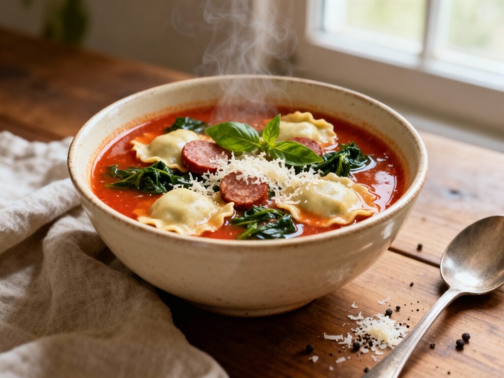 It’s hearty like a pasta dinner, soothing like soup, and the ravioli basically does all the heavy lifting—tender pasta pockets plus a rich broth, all in one pot with easy cleanup.