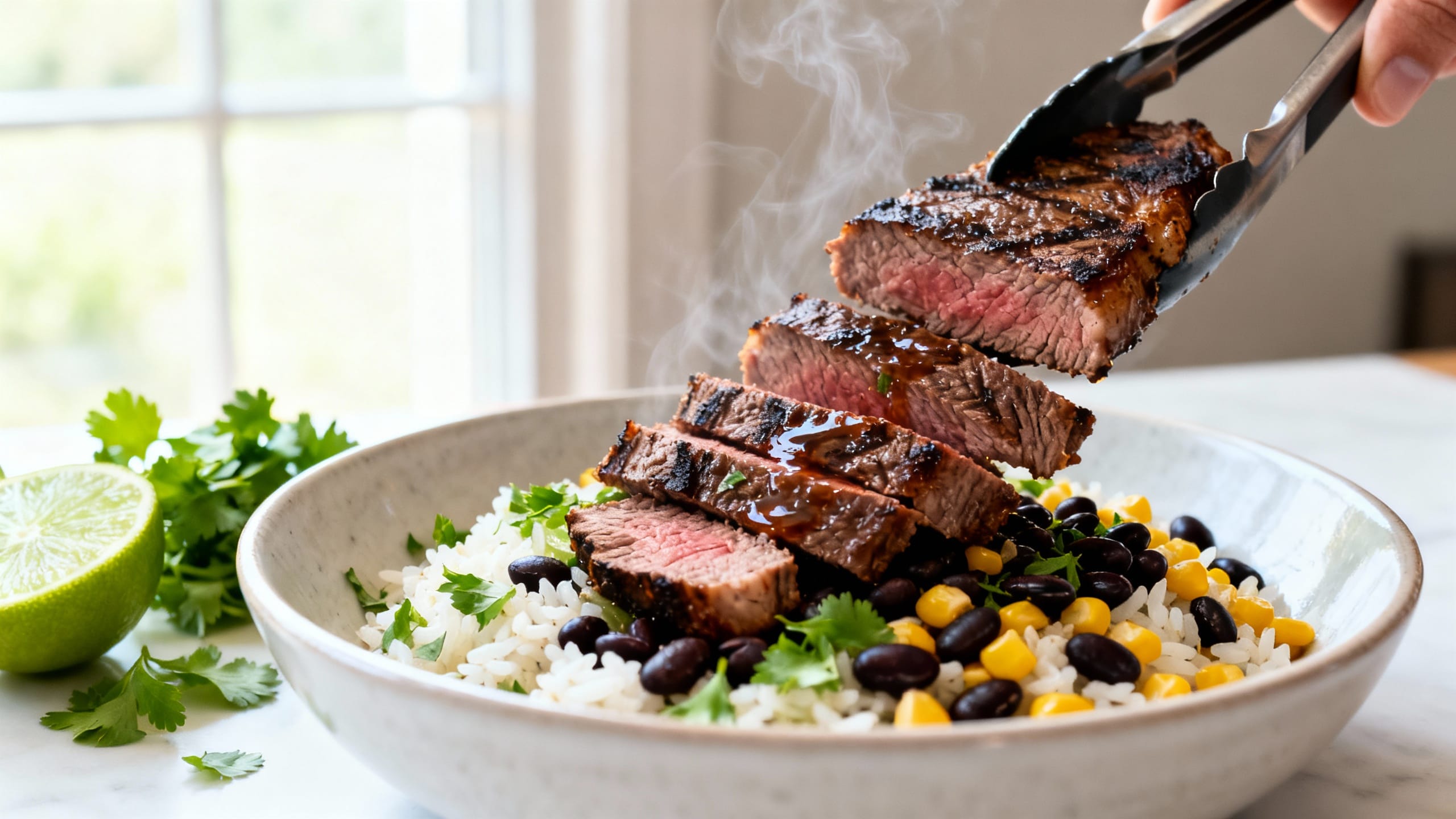 Flank steak and skirt steak are top-tier for bowls because they soak up marinade and cook fast. Sirloin also works if you want something a little thicker and naturally tender—just slice it thin and against the grain.