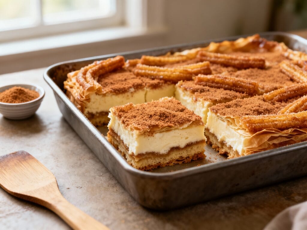 This is the dessert you bring “just in case” and then watch it disappear before the main dish is even served. It’s got that warm cinnamon-sugar churro vibe, but with a creamy cheesecake center that feels fancy without being fussy.
