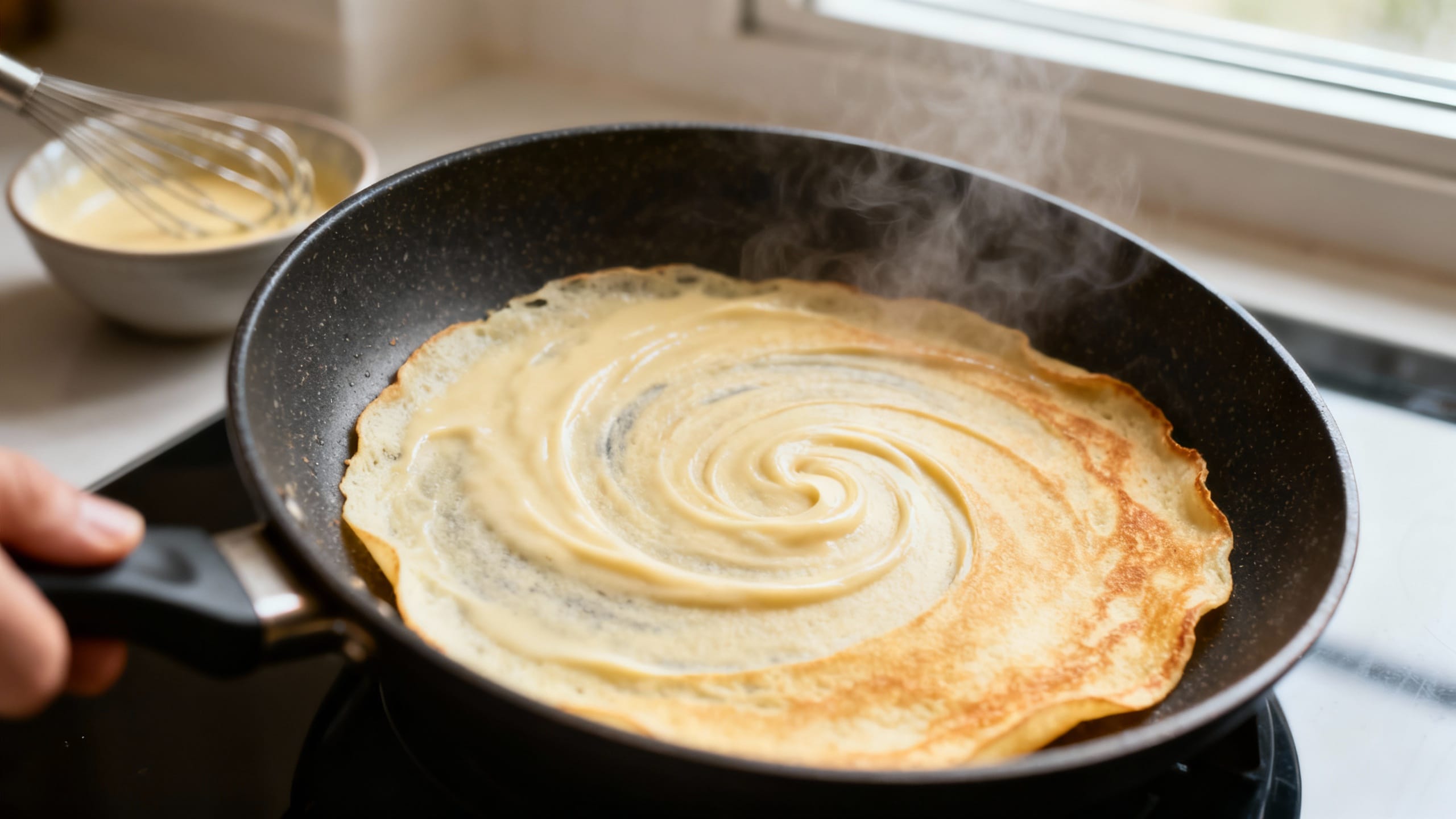 • Swirl fast: Pour, then immediately rotate the pan so the batter spreads before it starts cooking.