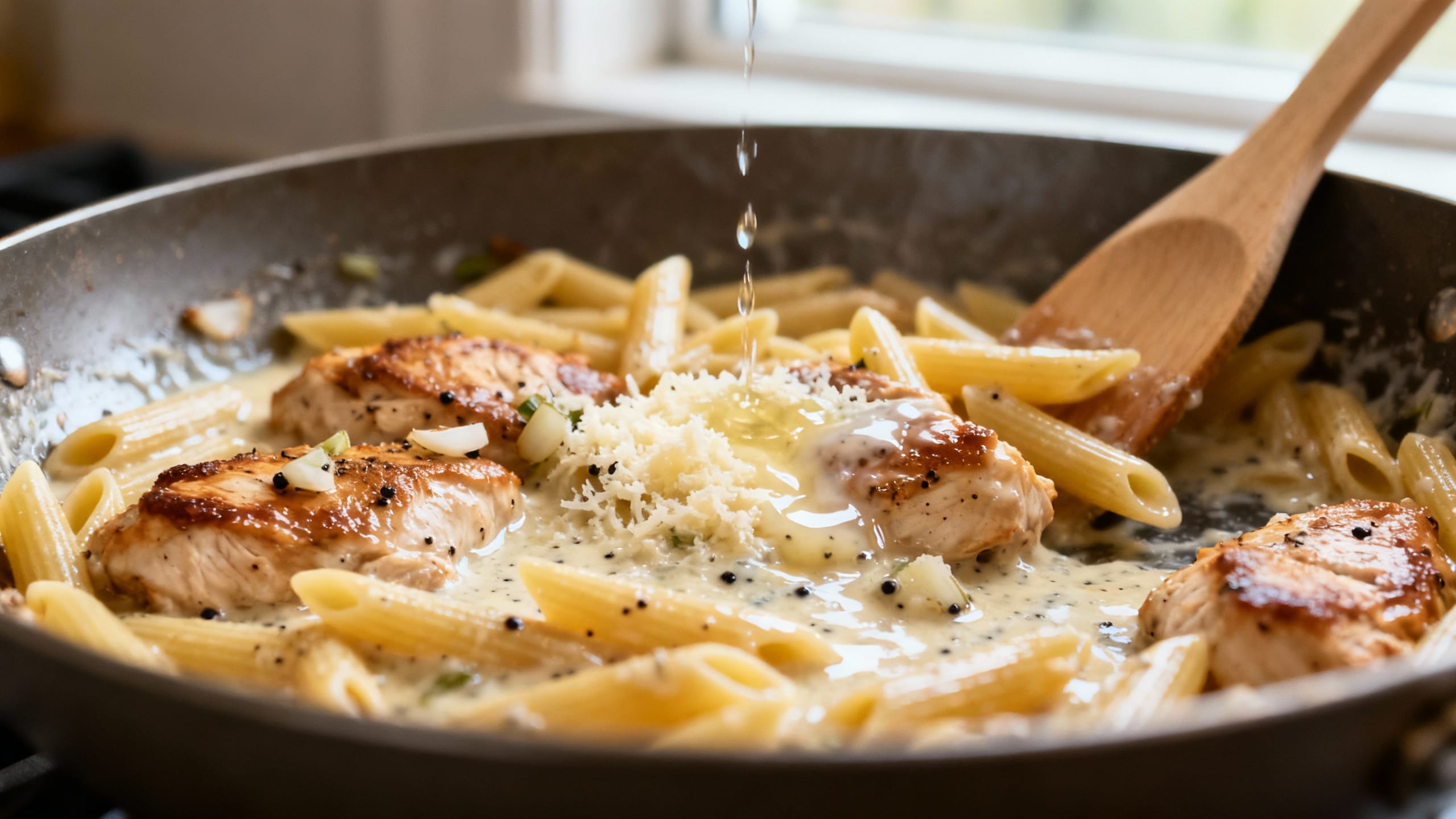 Simple Garlic Parmesan Chicken Pasta with Pantry Staples