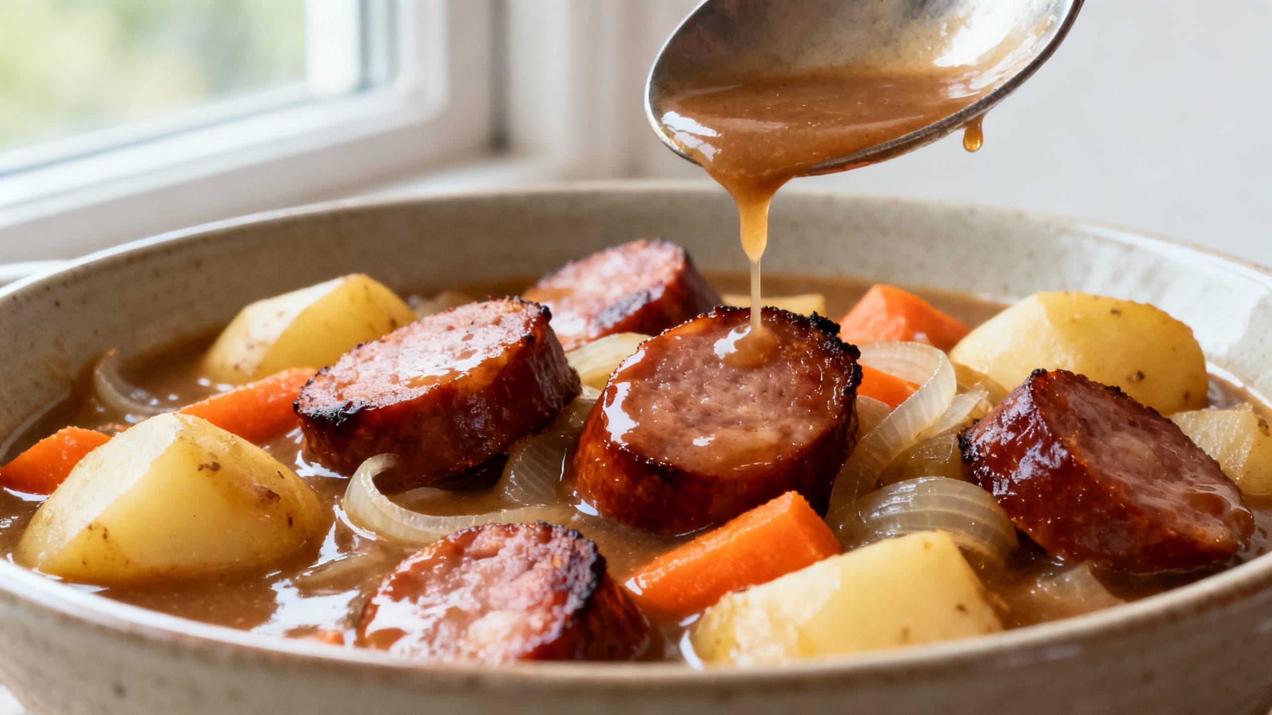 - Salt at the end (mostly). Smoked sausage and broth can be salty; taste after simmering before adding more.