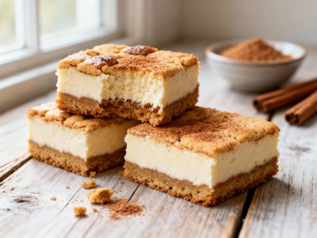 You’re getting three desserts in one: chewy snickerdoodle cookie, rich cheesecake, and that cinnamon-sugar sparkle on top. They’re easy to make with simple ingredients, they travel well, and they’re the kind of treat people “casually” grab seconds of.