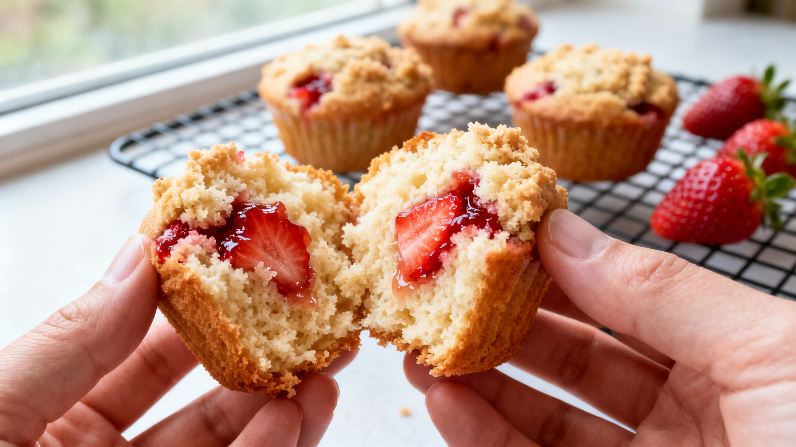 You get tall, bakery-style muffins with a soft crumb, juicy strawberry pockets, and a lightly golden top—no weird dryness, no sinking fruit, no fussy steps. It’s a straightforward recipe that feels special, especially with fresh berries.