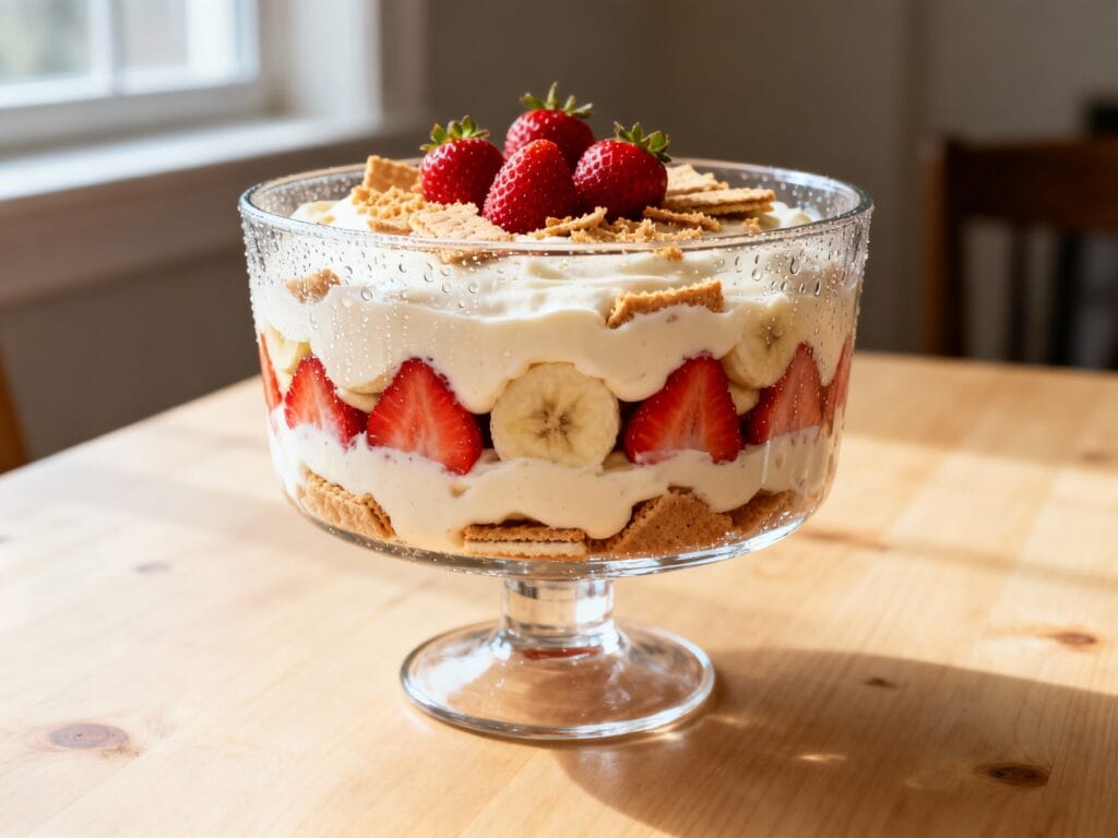 It’s best made 8–24 hours ahead. That window gives the wafers time to soften and the flavors to blend, while the fruit still looks fresh. If you’re making it the night before, wait to add any crushed wafer topping until right before serving.
