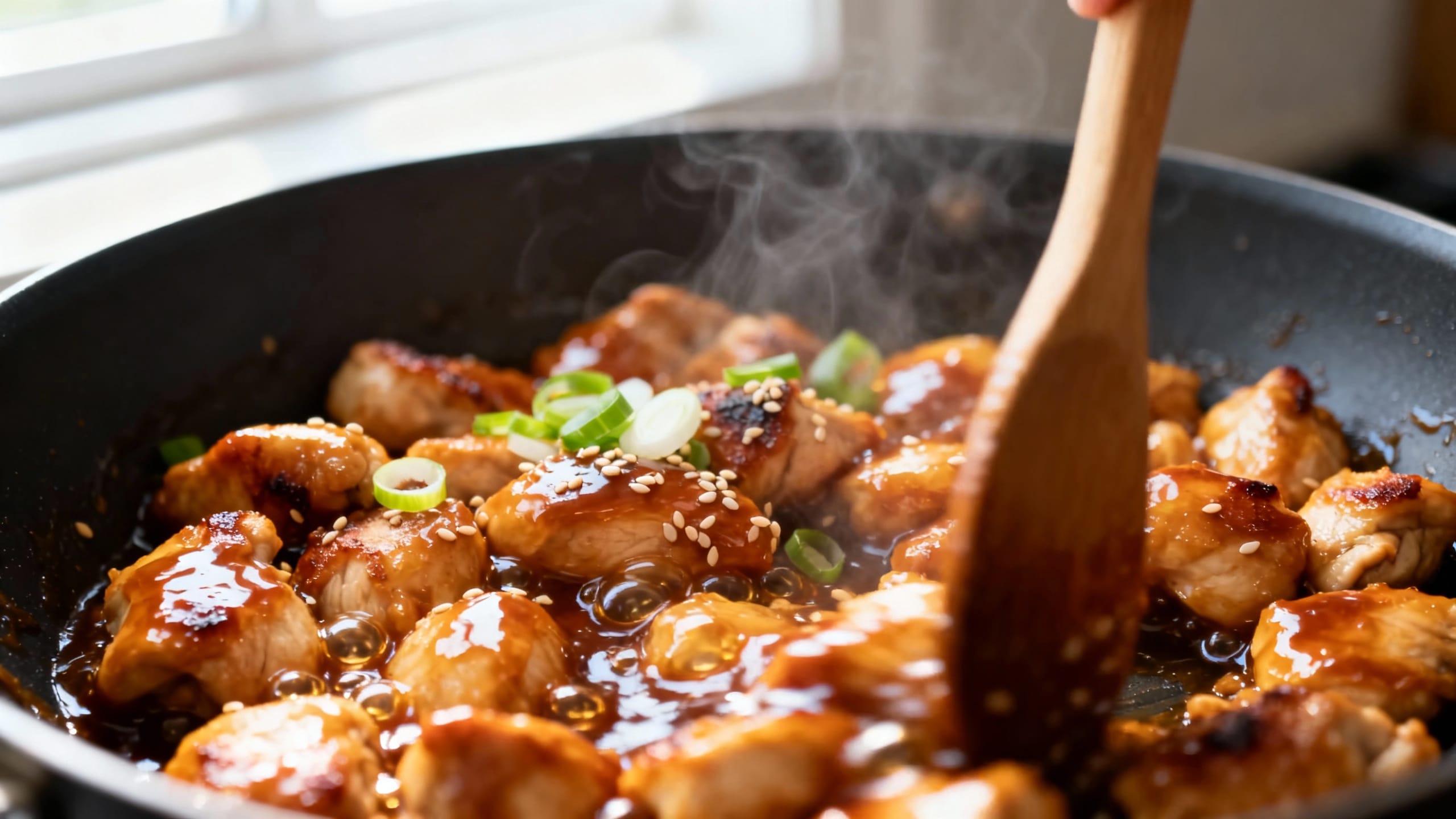 - Thicken with a slurry. Stir 1 tbsp water into 1 tsp cornstarch (from your pantry, separate from the earlier cornstarch). Add to the pan while stirring. Simmer 1–2 minutes until the sauce turns thick, glossy, and clingy.