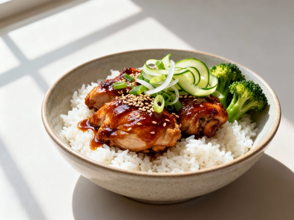 These bowls are fast, meal-prep friendly, and totally customizable—plus the sauce comes together with pantry staples and turns into that perfect sticky glaze that clings to every bite of chicken.