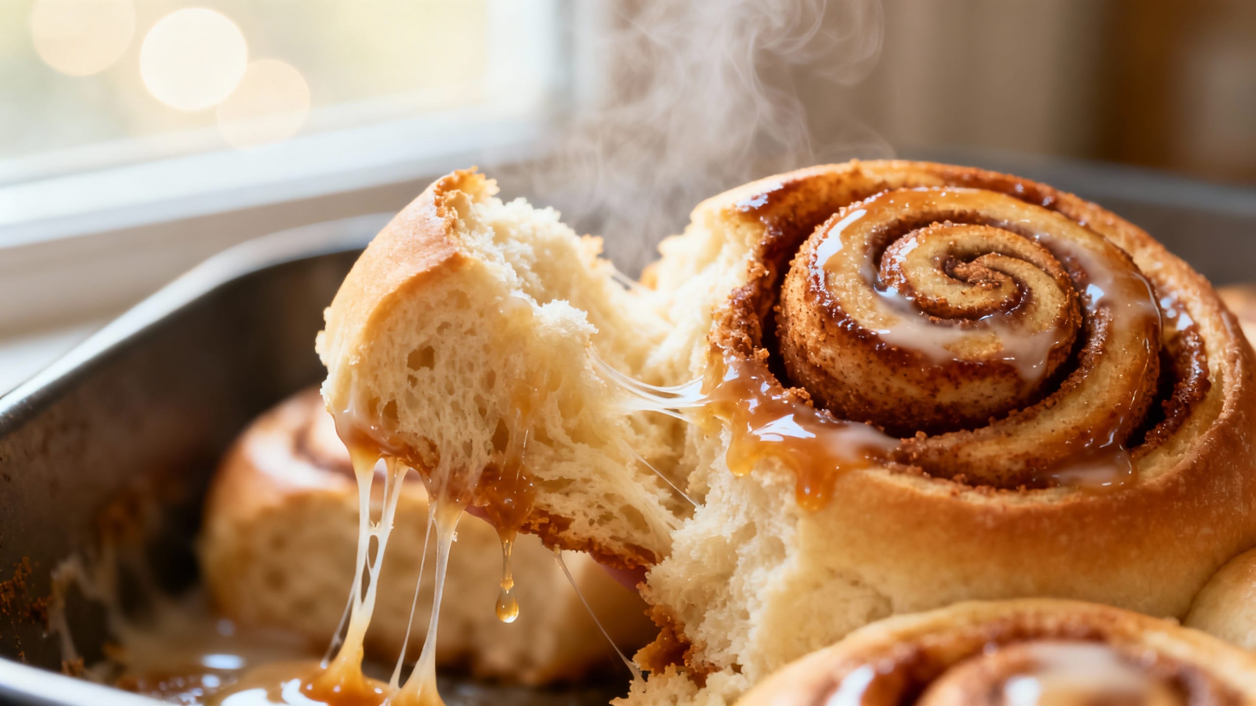 Usually it’s too much flour or overbaking. The dough should feel soft and a bit tacky, and the rolls should come out when the tops are light golden and the centers are set but tender. The heavy cream pour also helps keep everything plush and gooey.