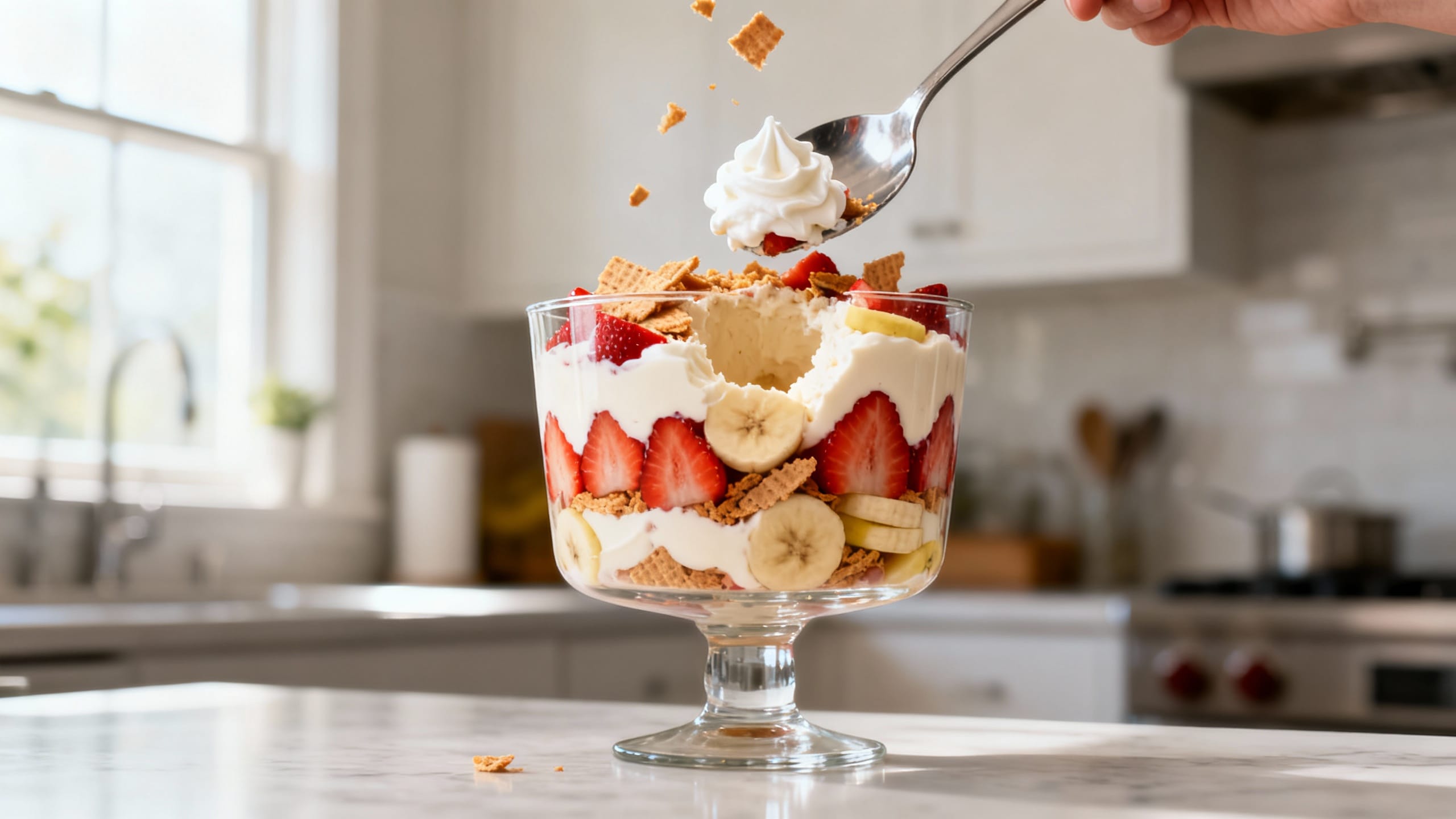 - Finish it cute. Crush a handful of wafers and sprinkle over the top, then add a few strawberry slices for that “everyone is pinning” look.