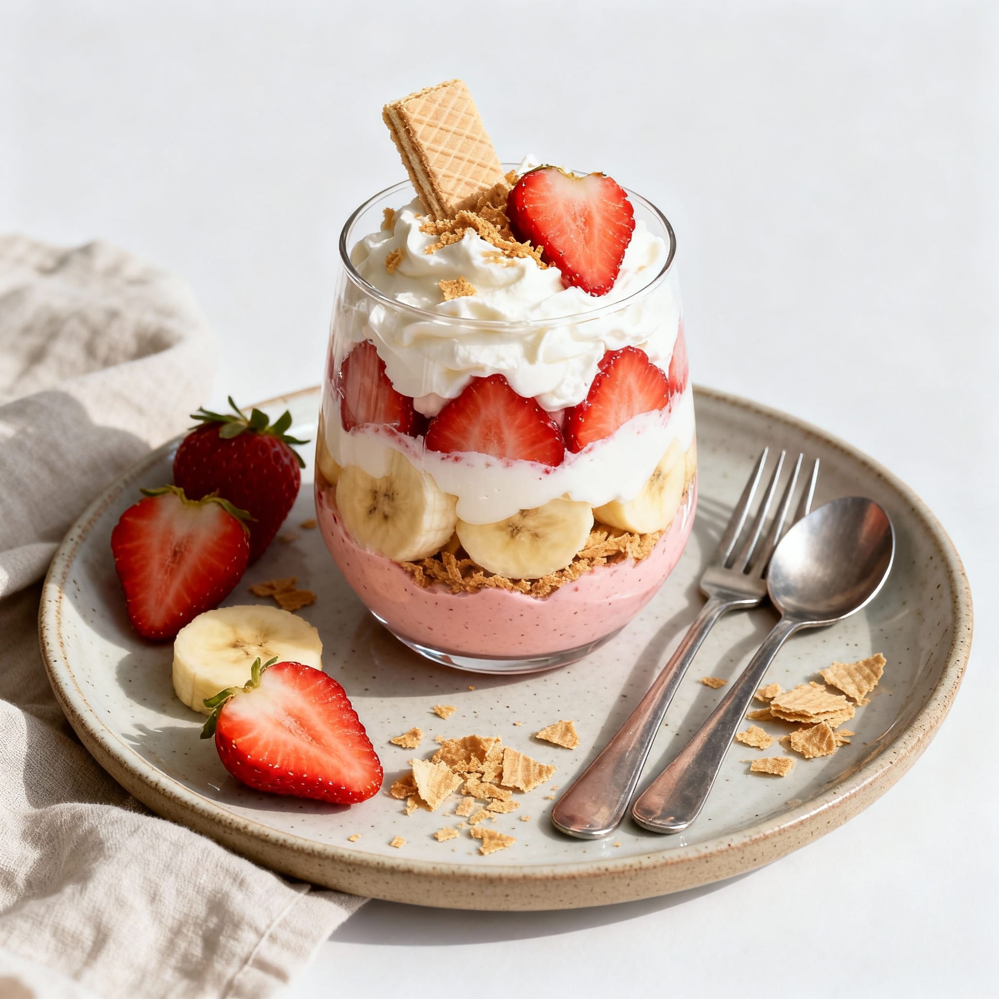 It’s a low-effort, high-reward dessert with big strawberry-banana smoothie energy—except it’s layered, spoonable, and dramatically delicious after a few hours in the fridge.